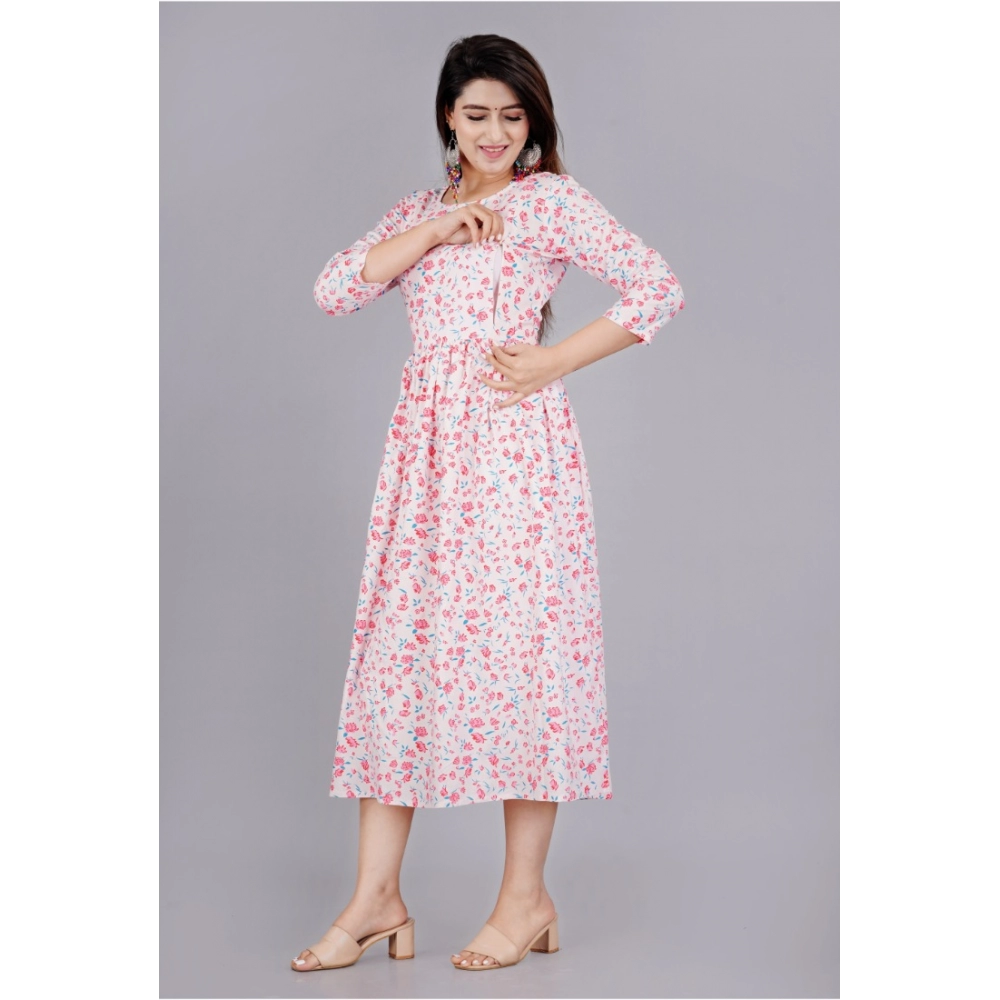 Women’s Casual 3/4 Sleeve Printed Viscose Maternity Feeding Kurti