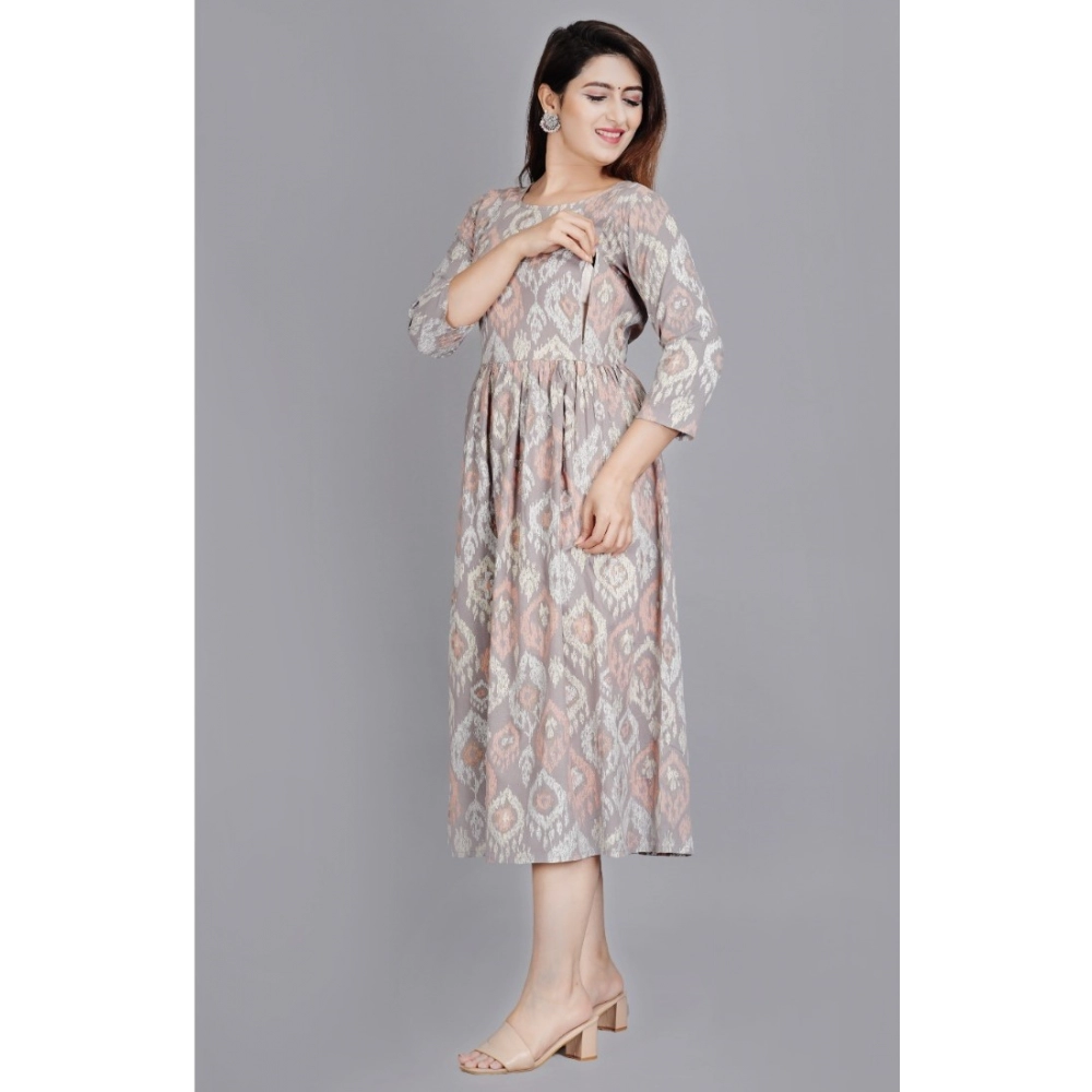 Women’s Casual 3/4 Sleeve Printed Viscose Maternity Feeding Kurti (Grey)