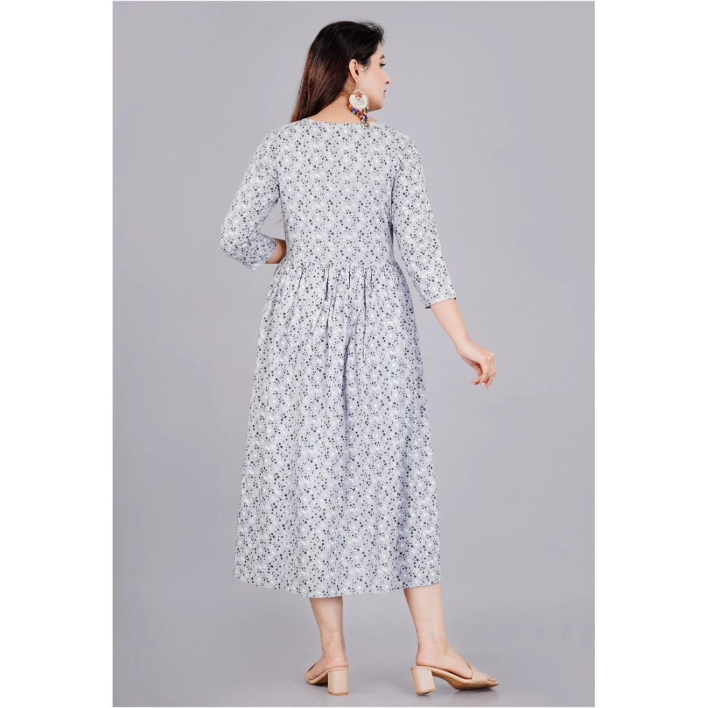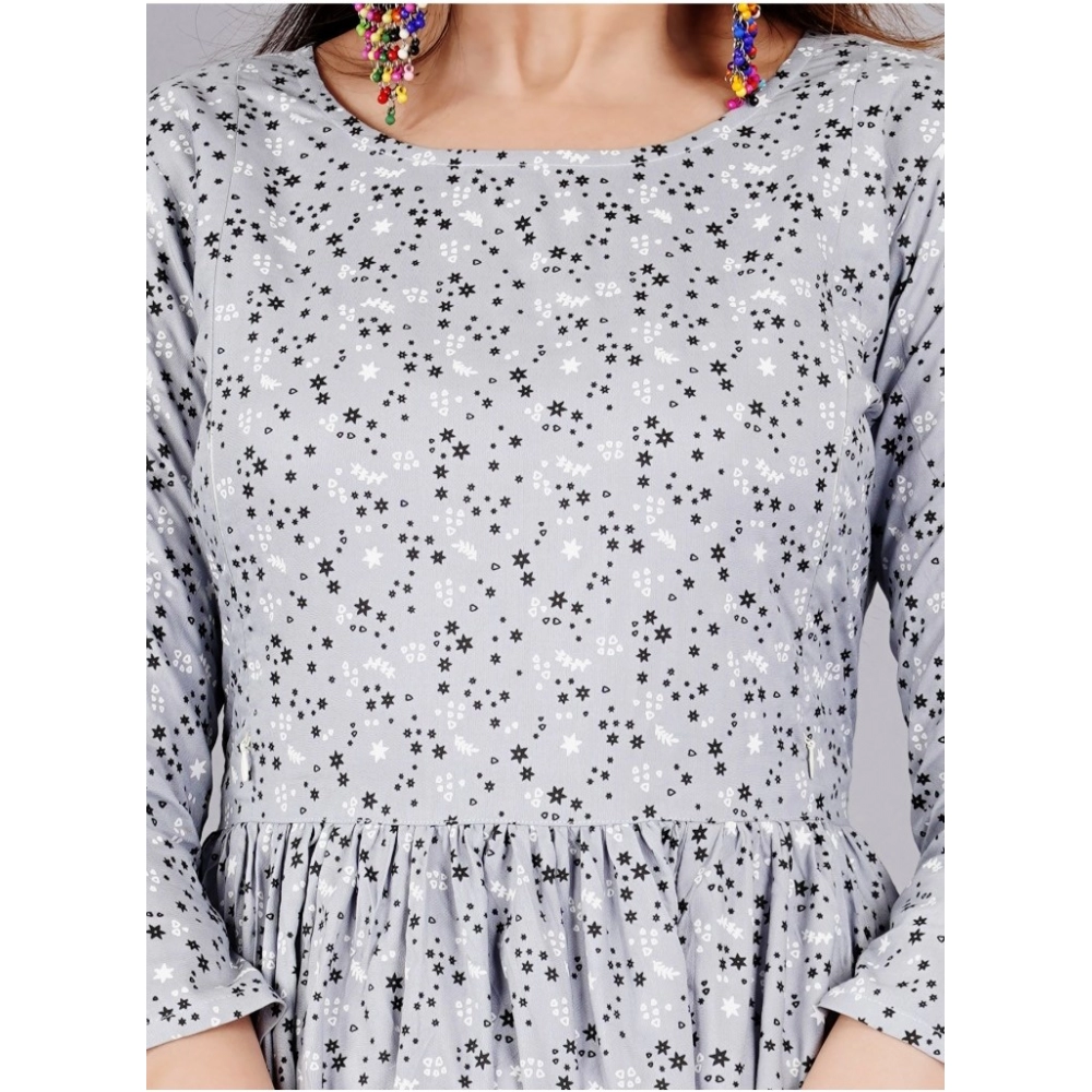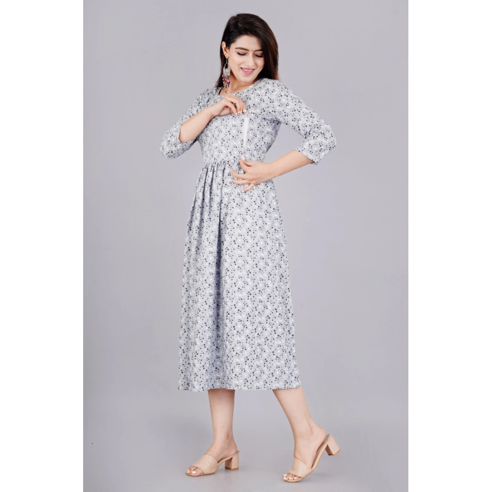 Women’s Casual 3/4 Sleeve Printed Viscose Maternity Feeding Kurti (Grey)