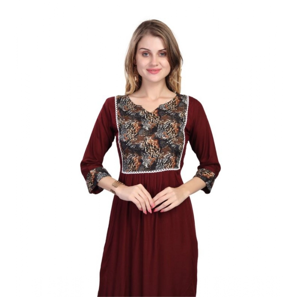 Women’s Casual 3/4 Sleeve Viscose Rayon Printed Kurti (Brown)
