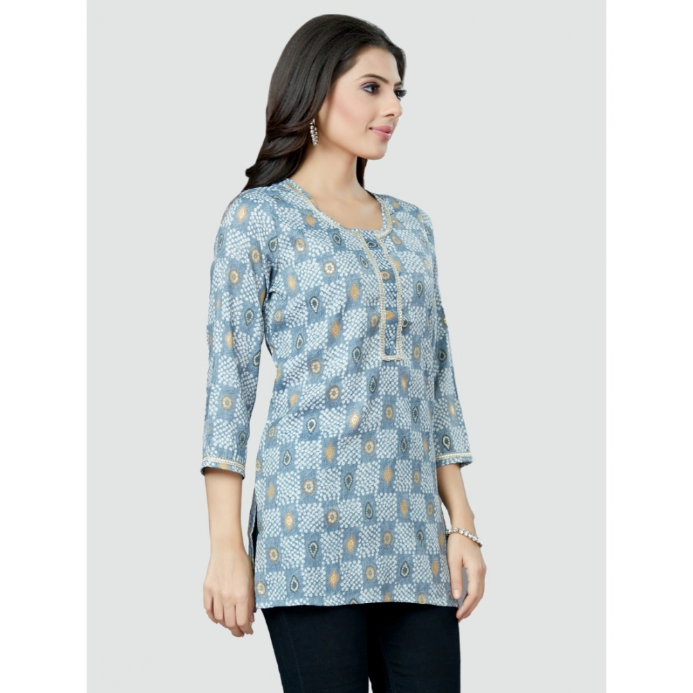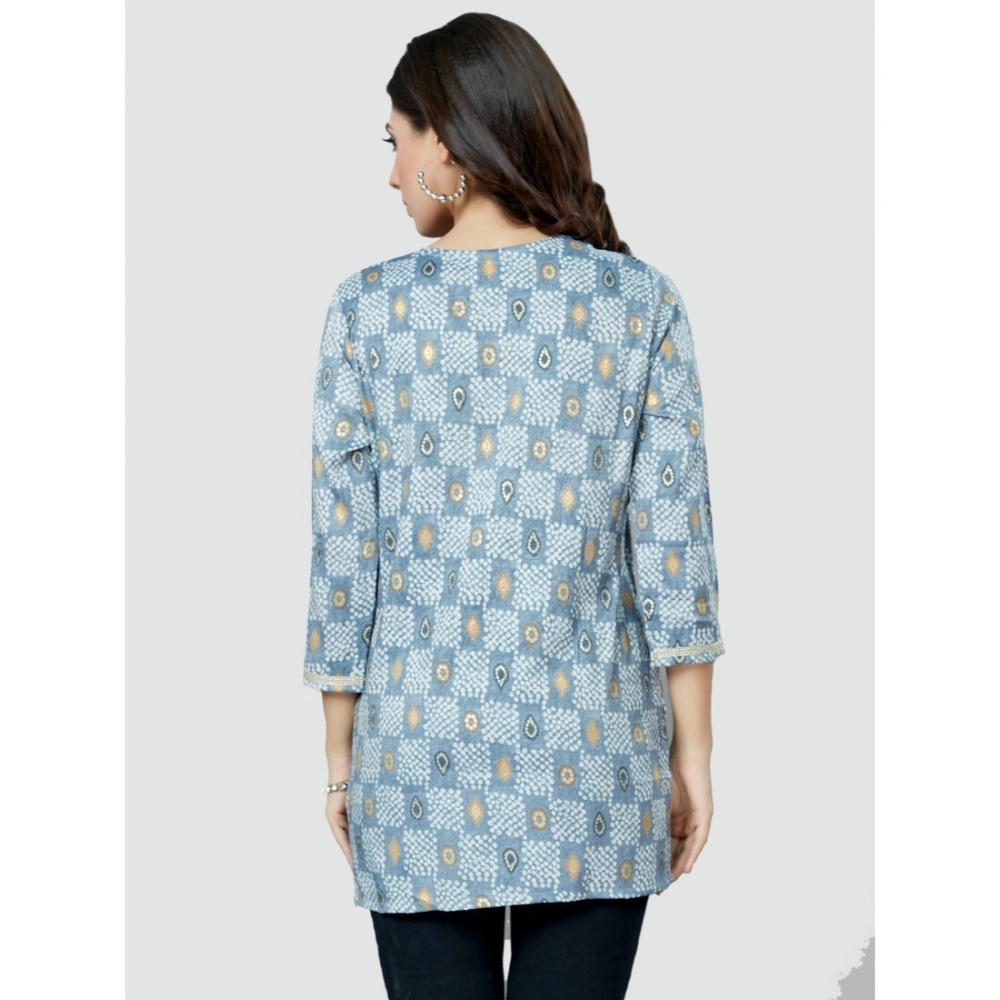 Women’s Casual 3/4 Sleeves Printed Rayon Short Top (Blue)