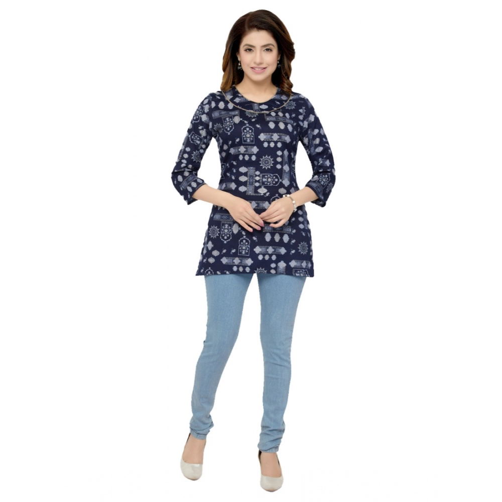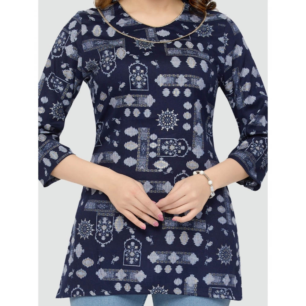 Women’s Casual 3/4 Sleeves Printed Rayon Short Top (Blue)