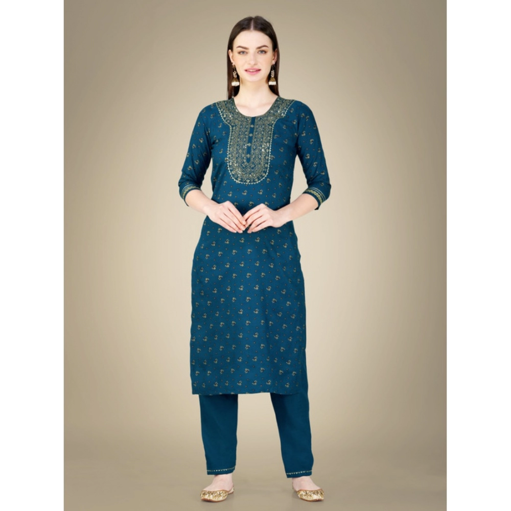Women’s Casual 3-4 th Sleeve Embroidery Cotton Kurti Pant Dupatta Set