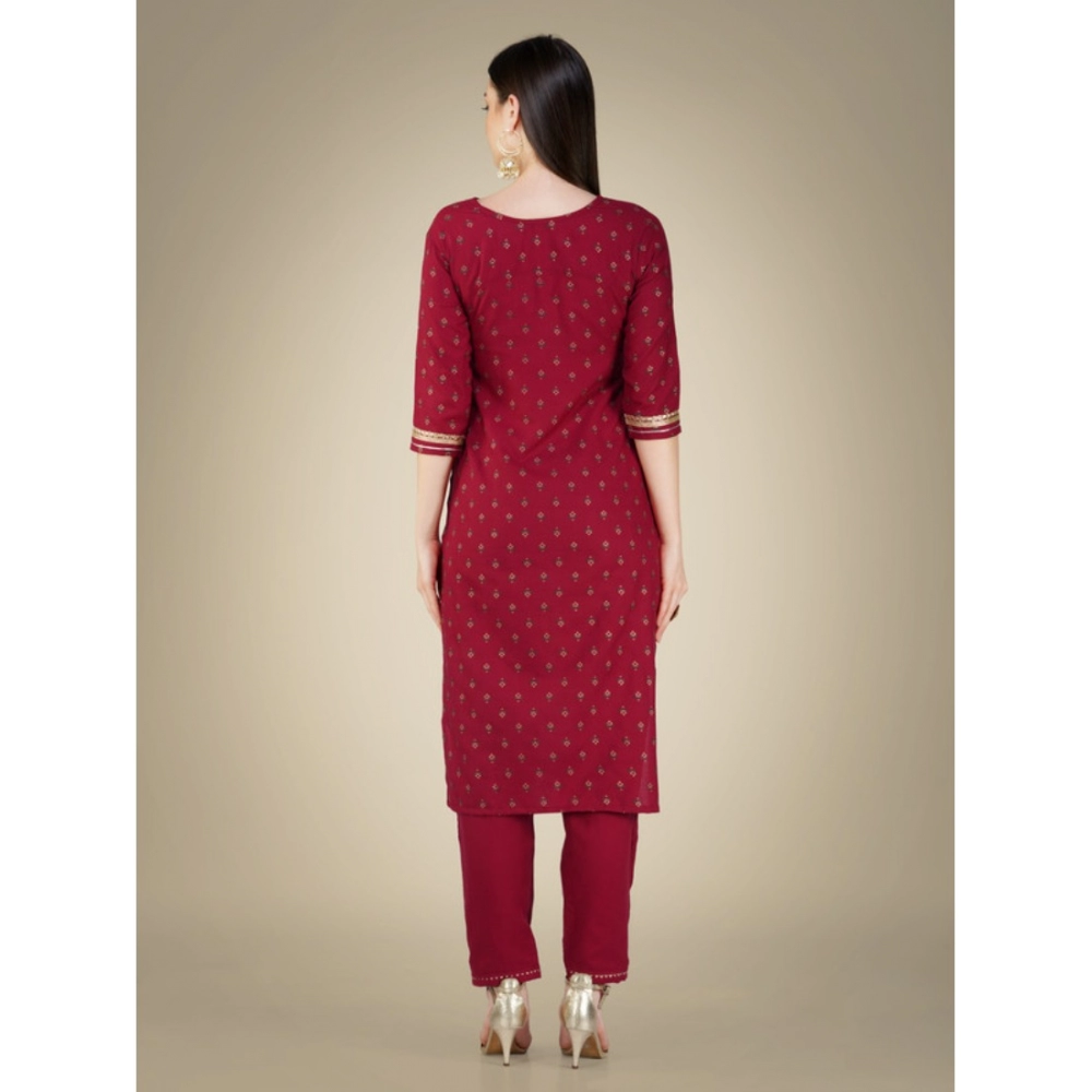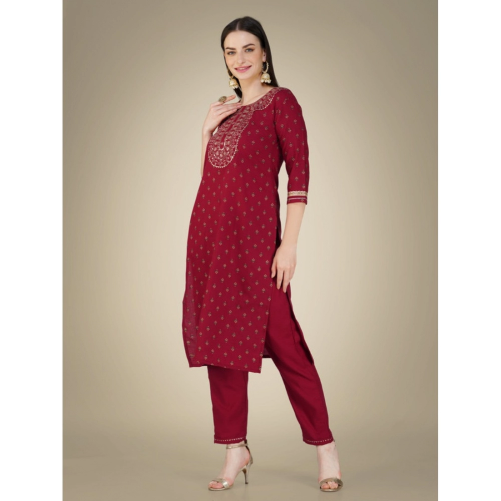 Women’s Casual 3-4 th Sleeve Embroidery Cotton Kurti Pant Dupatta Set