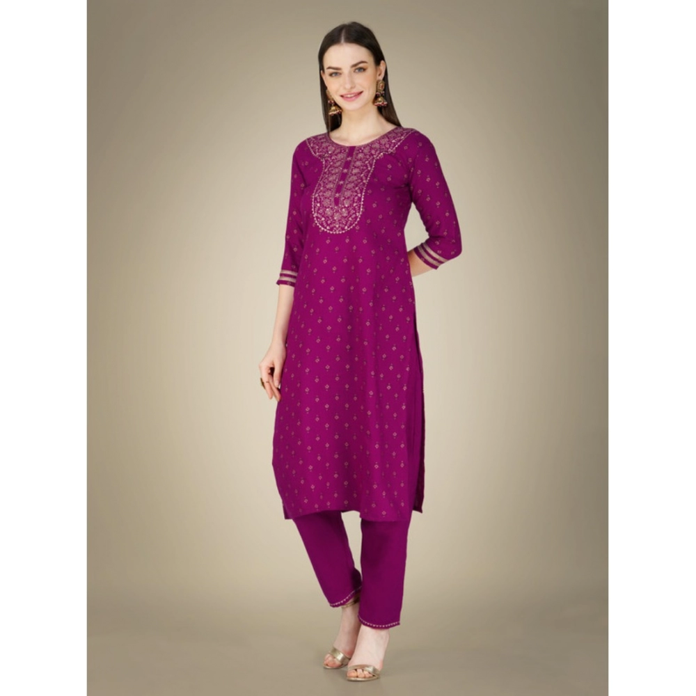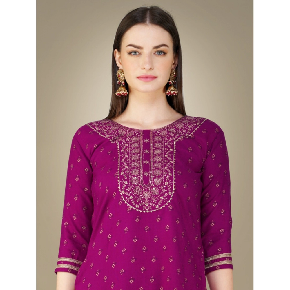 Women’s Casual 3-4 th Sleeve Embroidery Cotton Kurti Pant Dupatta Set