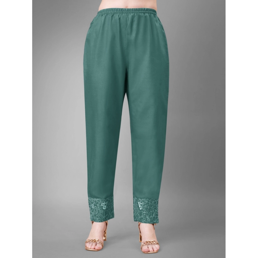 Women’s Casual 3-4 th Sleeve Embroidery Cotton Kurti Pant Dupatta Set (Teal)