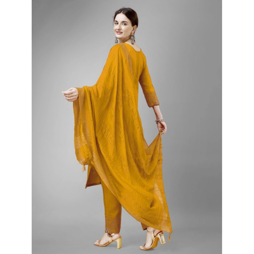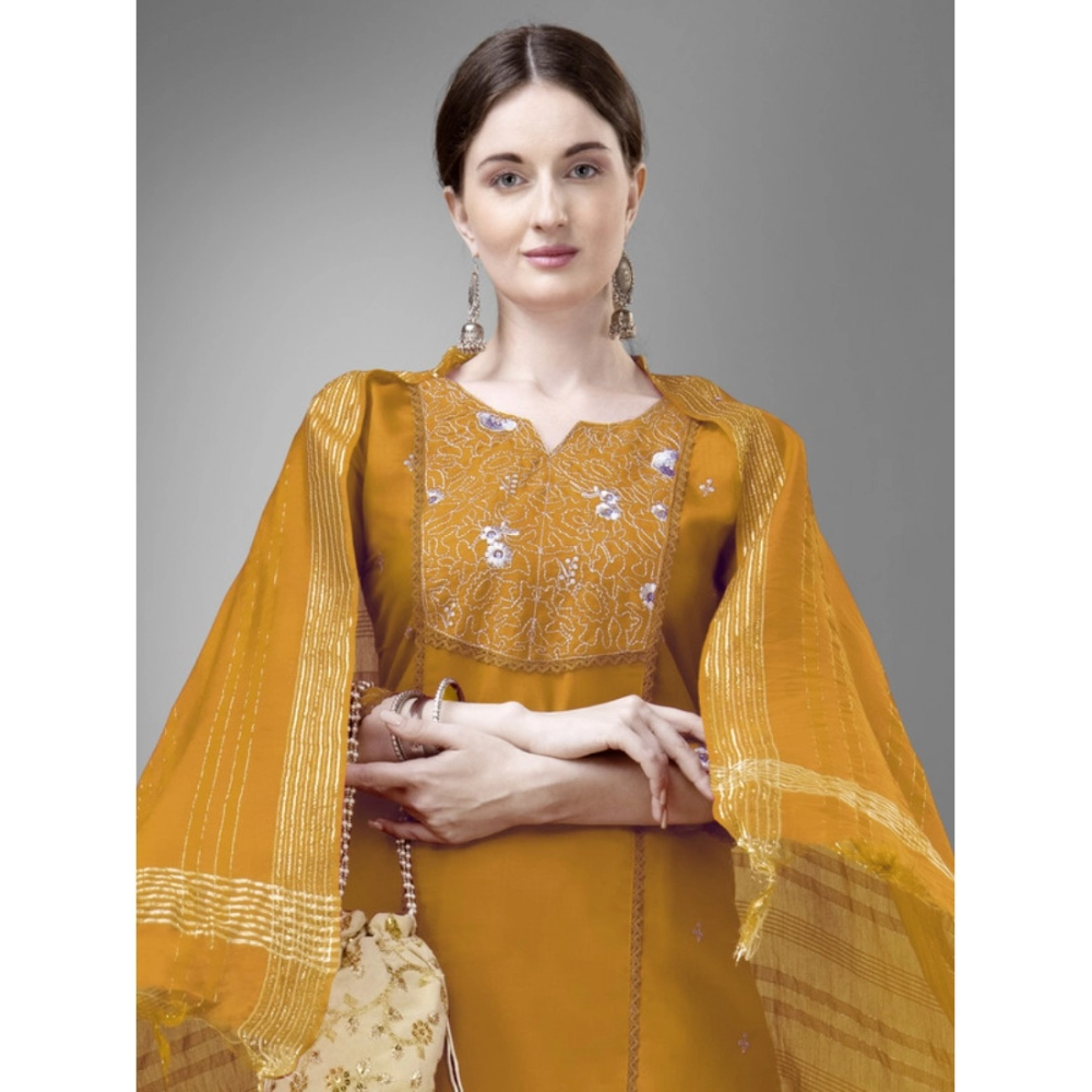 Women’s Casual 3-4 th Sleeve Embroidery Cotton Kurti Pant Dupatta Set