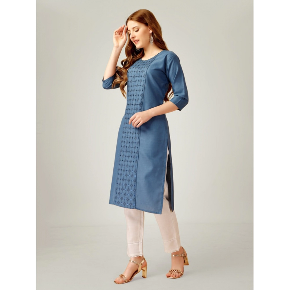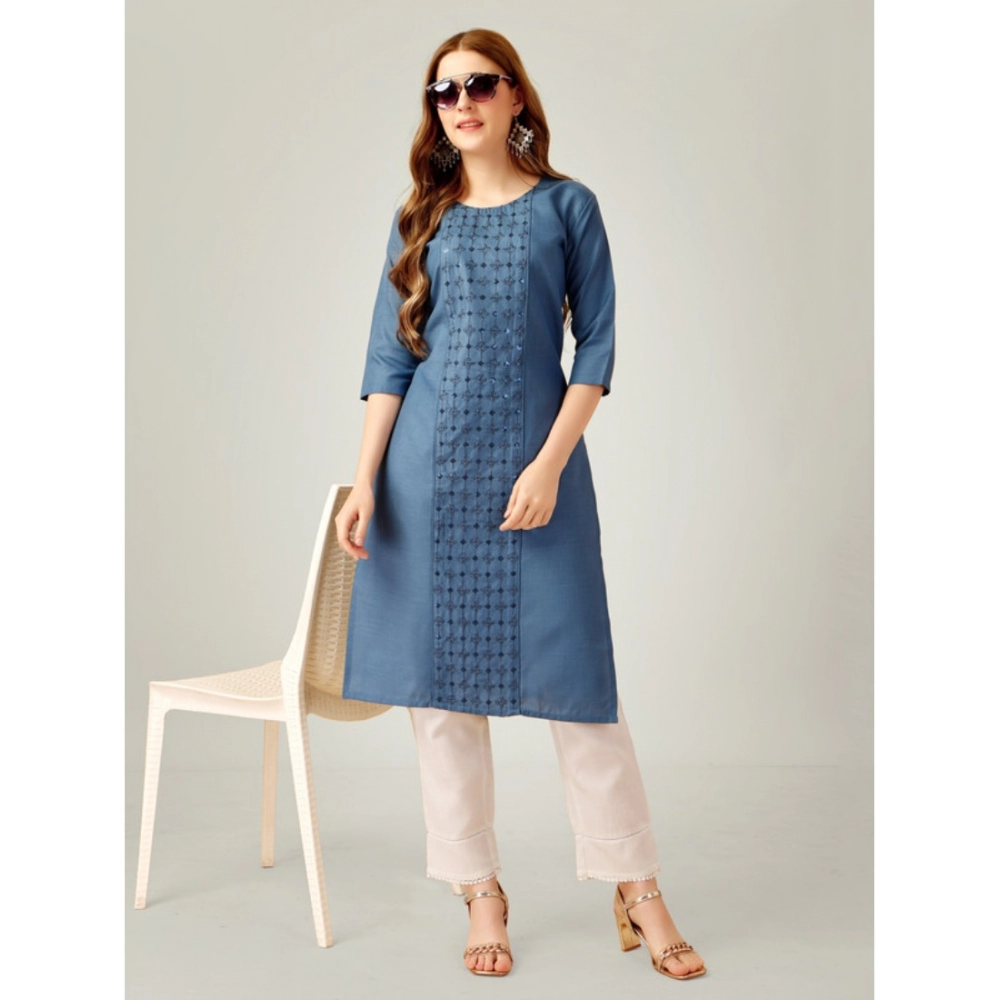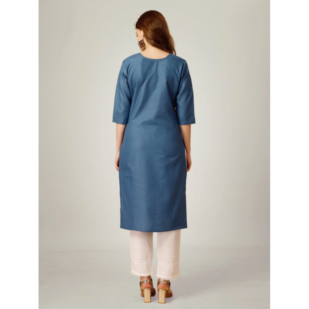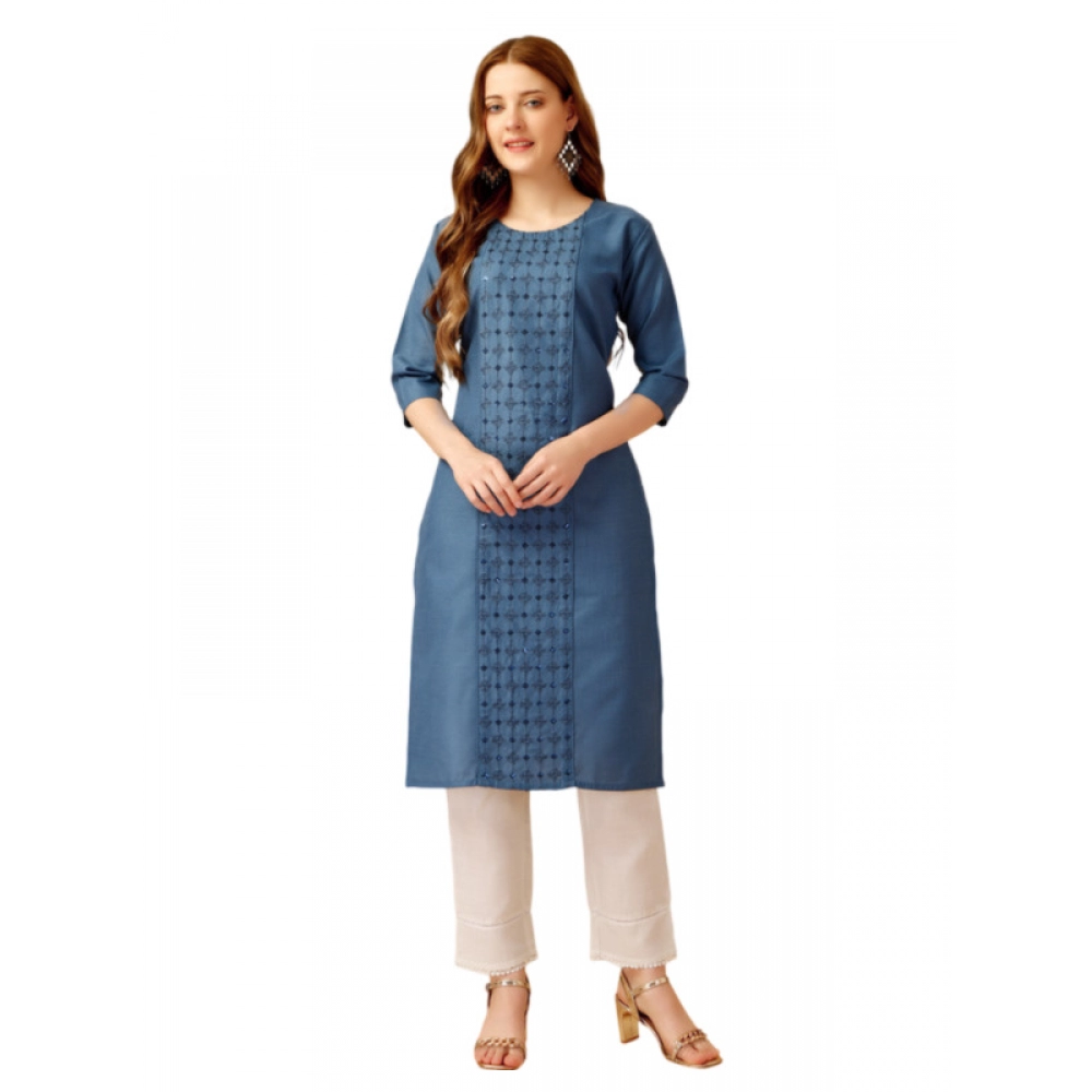 Women’s Casual 3-4 th Sleeve Embroidery Cotton Kurti Pant Set