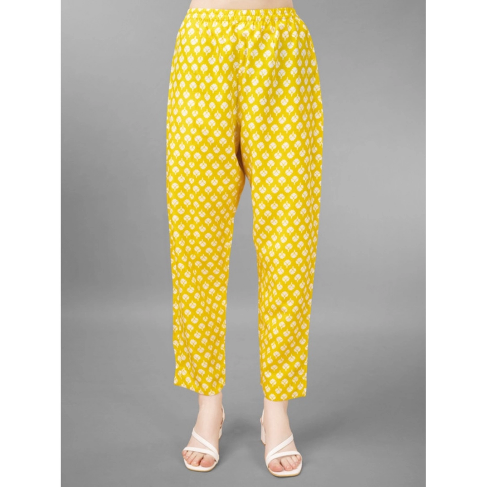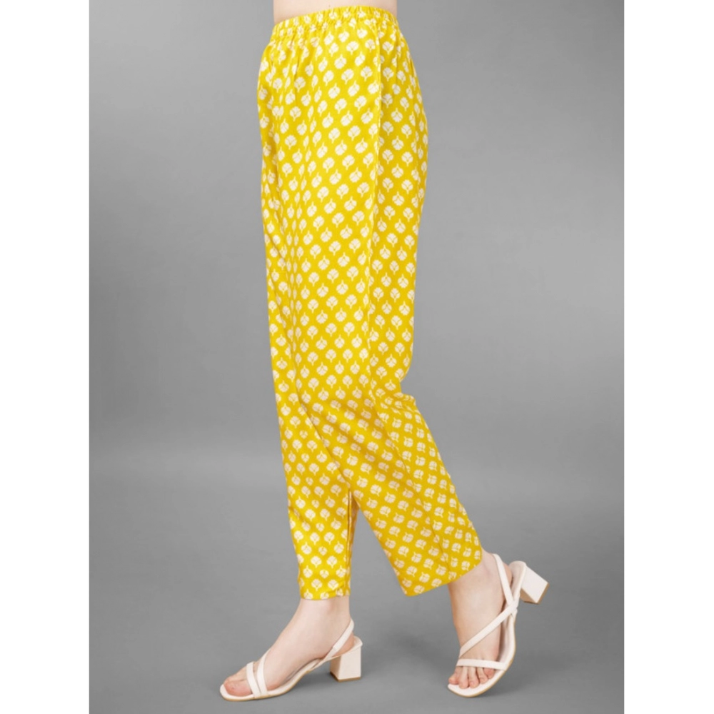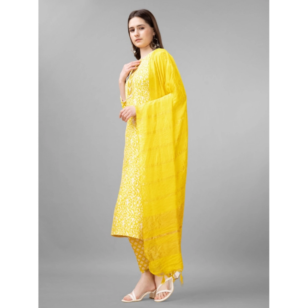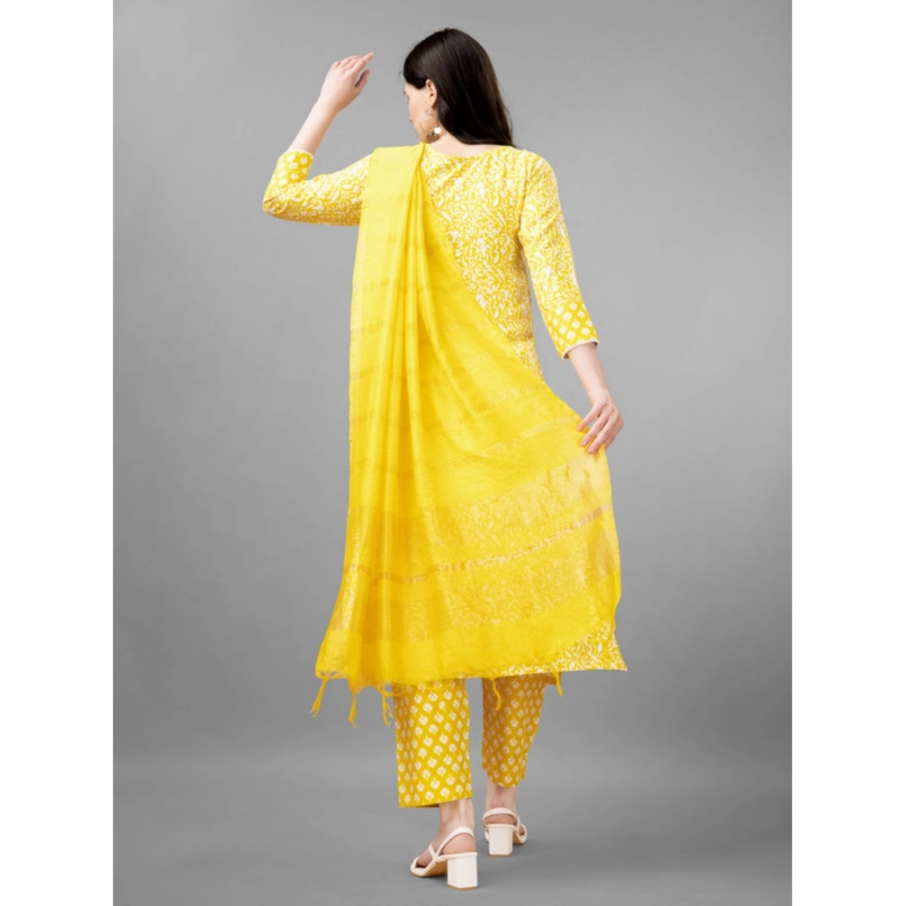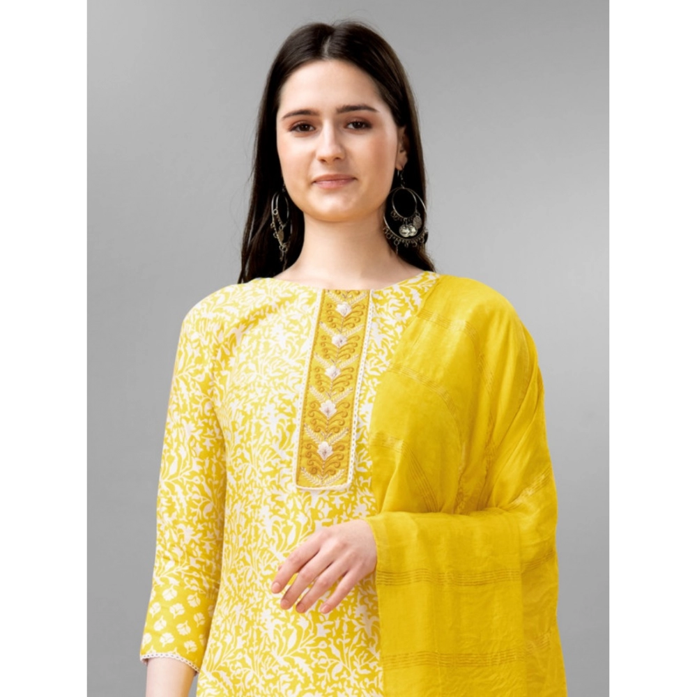 Women’s Casual 3-4 th Sleeve Embroidery Rayon Kurti Pant Dupatta Set (Yellow)