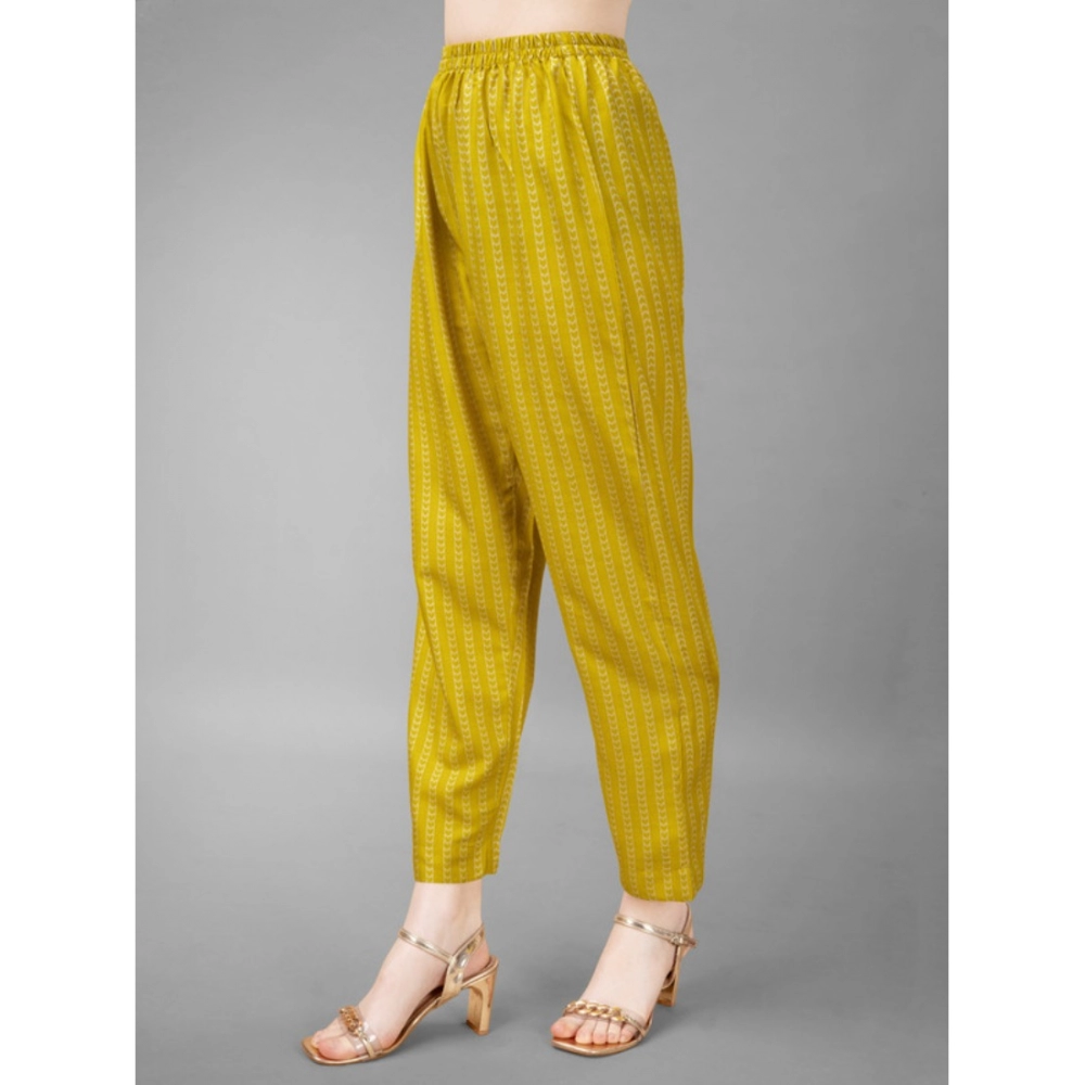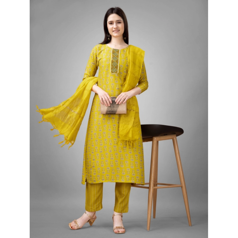 Women’s Casual 3-4 th Sleeve Embroidery Rayon Kurti Pant Dupatta Set (Yellow)