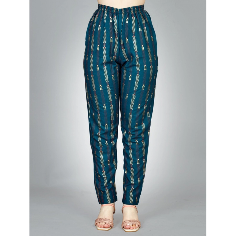 Women’s Casual 3-4 th Sleeve Embroidery Rayon Kurti Pant Set (Dark Blue)