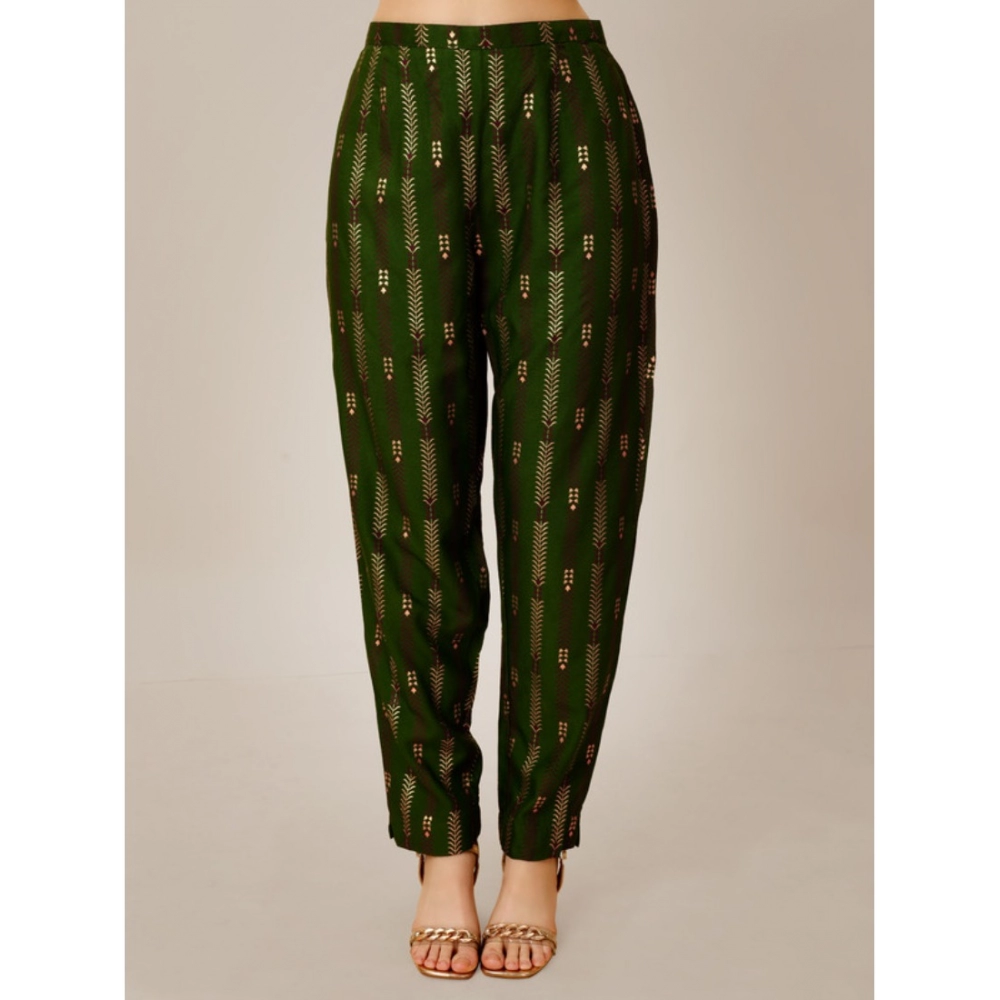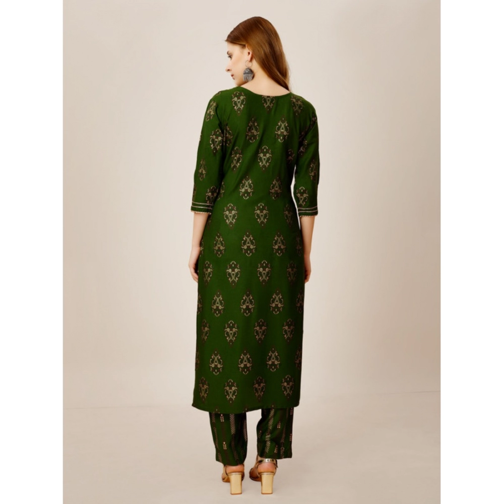 Women’s Casual 3-4 th Sleeve Embroidery Rayon Kurti Pant Set (Green)