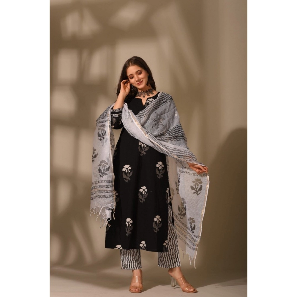 Women’s Casual 3/4th Sleeve Floral Print Cotton Kurti Set