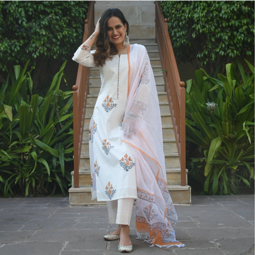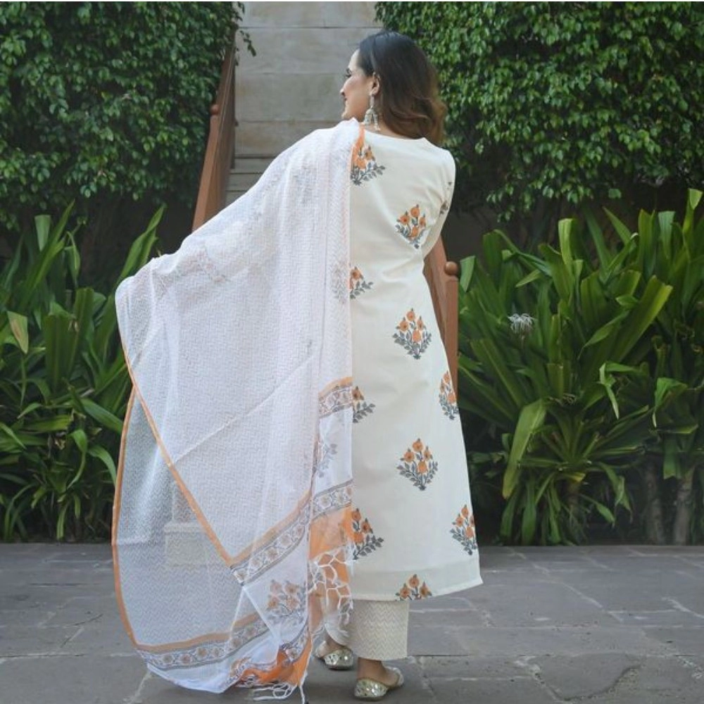 Women’s Casual 3/4th Sleeve Printed Cotton Kurti Set