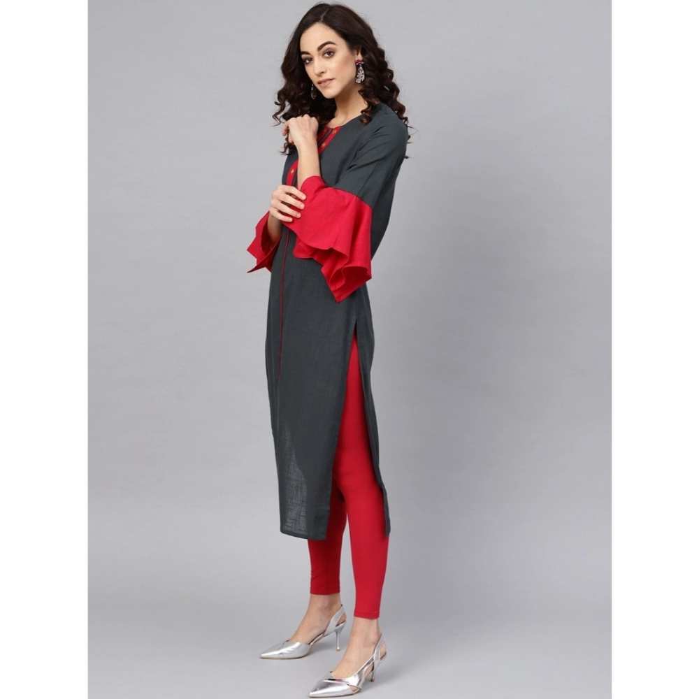 Women’s Casual Bell Sleeves Mirror Work Cotton Slub Kurti (Grey)