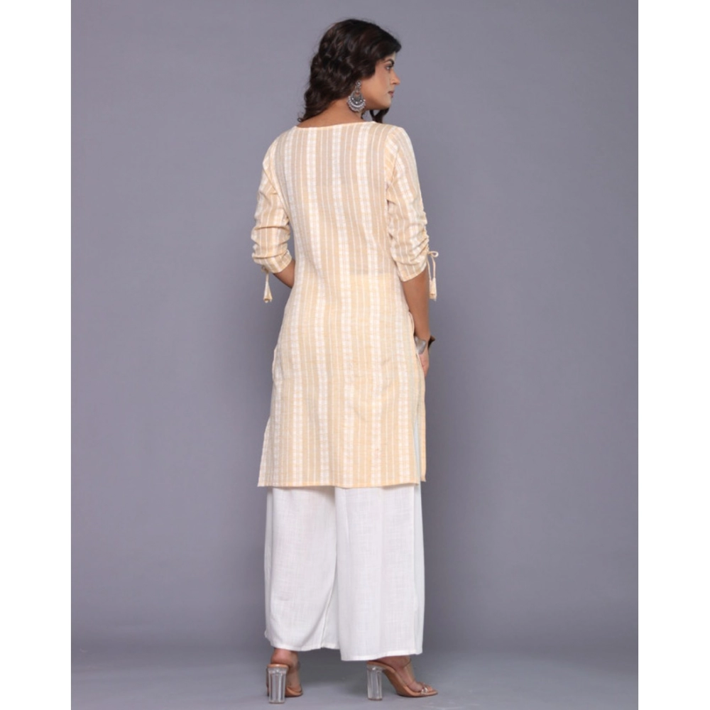 Women’s Casual Cotton Blend 3-4th Sleeve Straight Kurti (Yellow)
