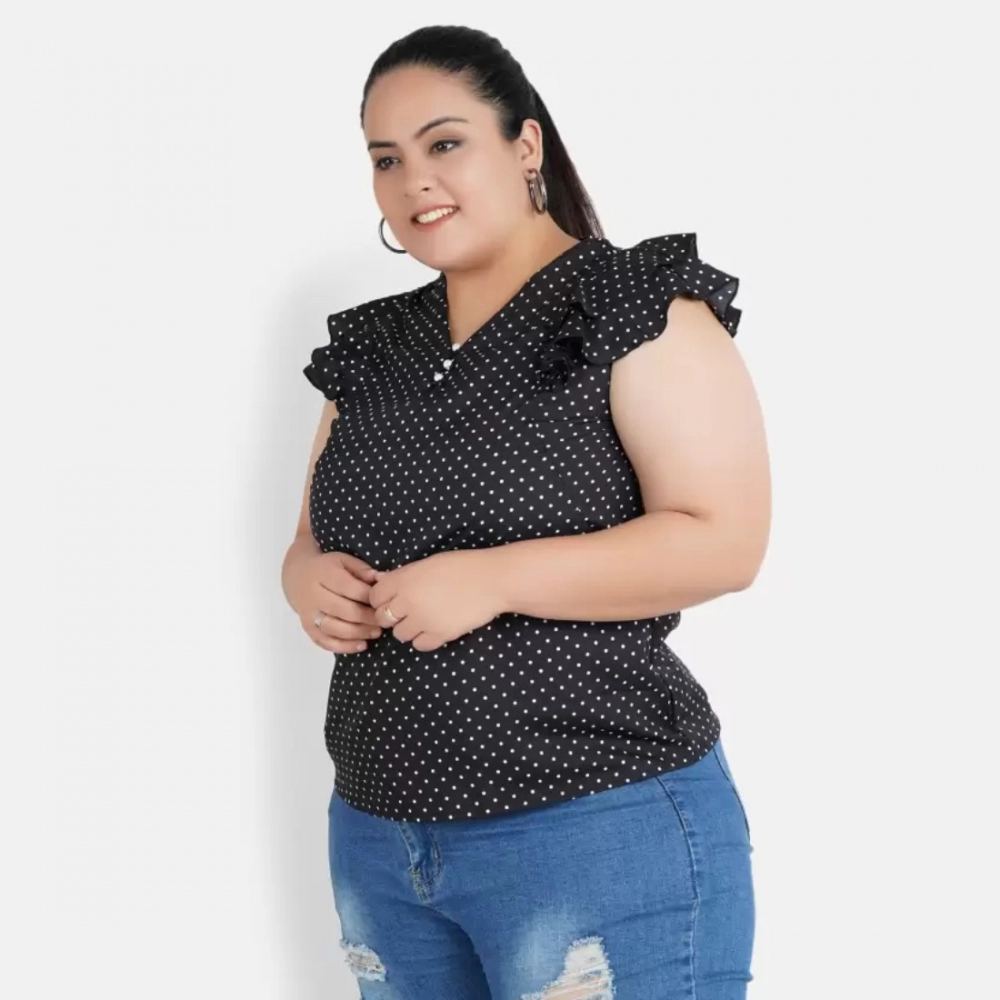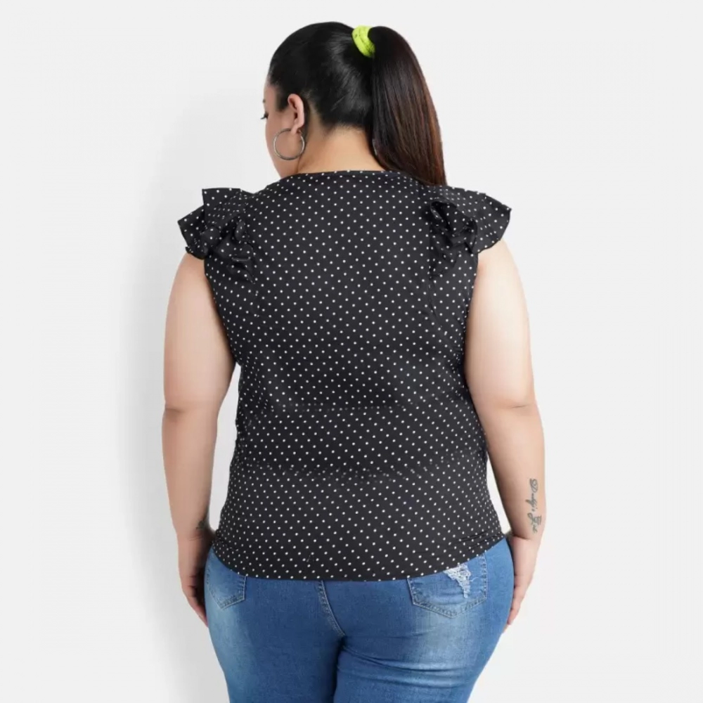 Women’s Casual Flutter Sleeve Polka Print Black Top