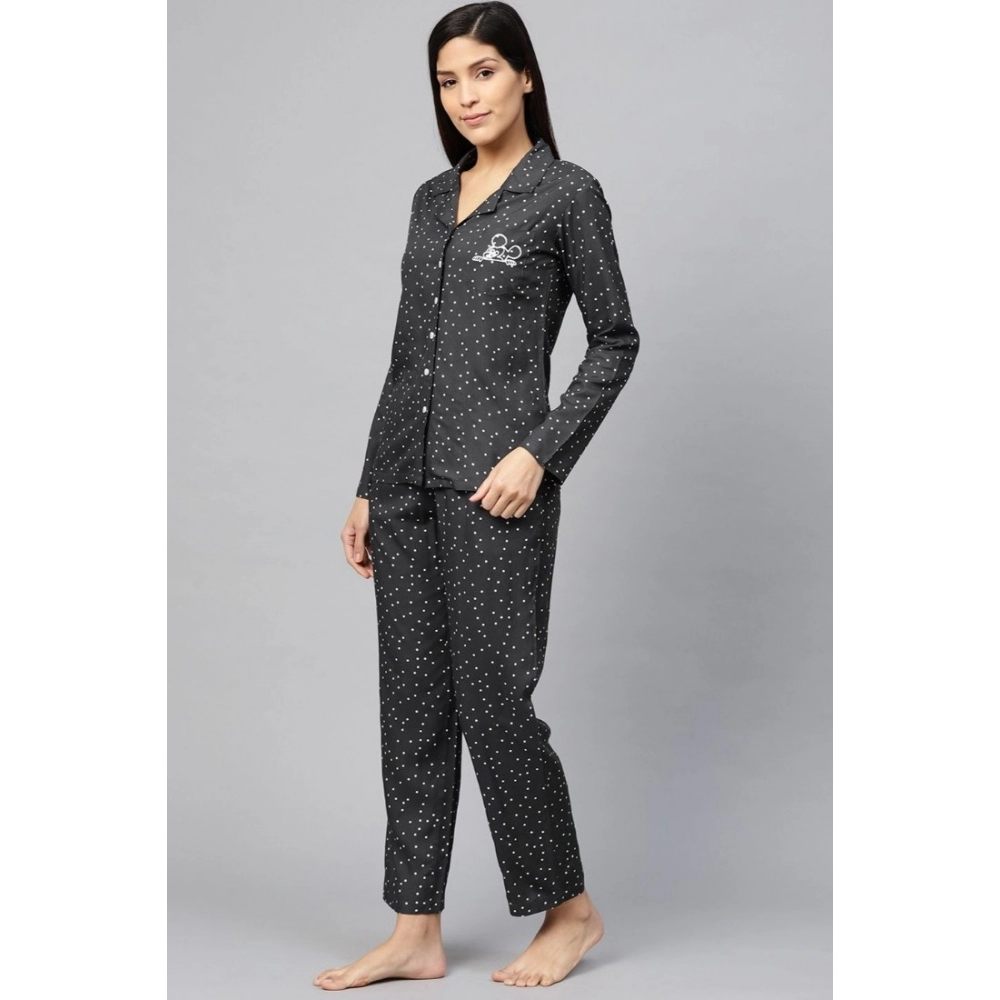 Be the first to review “Women’s Casual Full Sleeves Polka Dot Printed Rayon Shirt With Pyjama Pant Night Suit Set (Grey)”