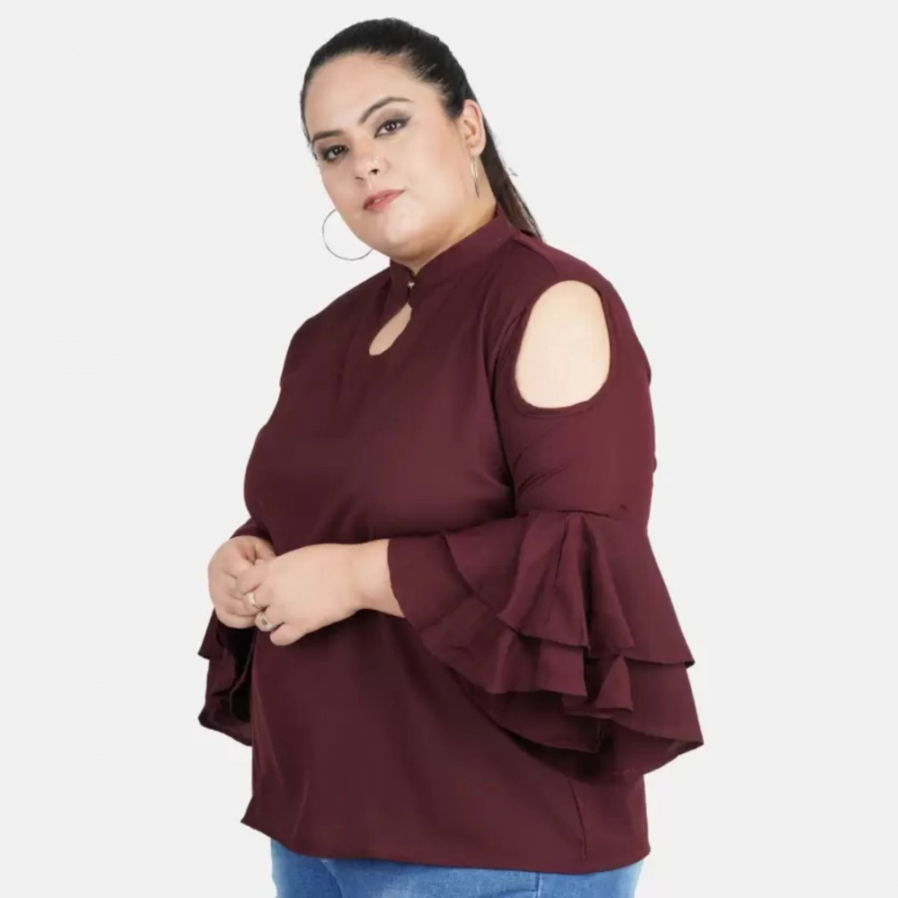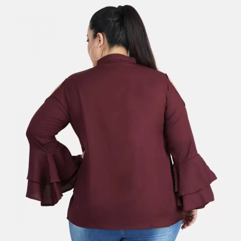 Women’s Casual Juliet Sleeve Solid Maroon Top