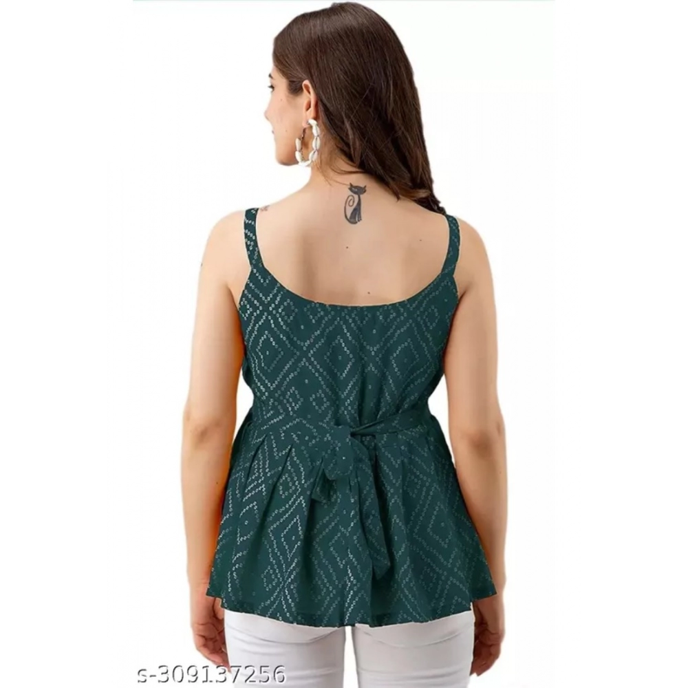 Women’s Casual Sleeve Less Printed Rayon Top (Green)