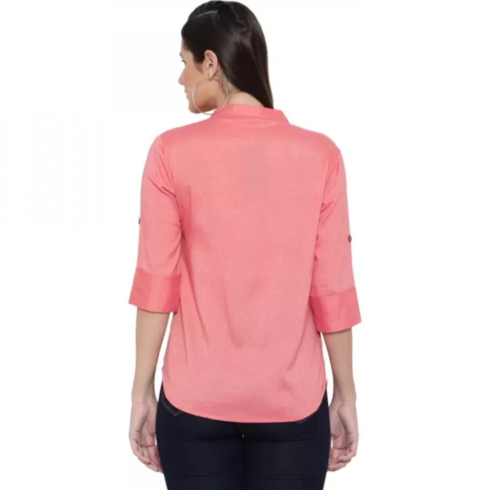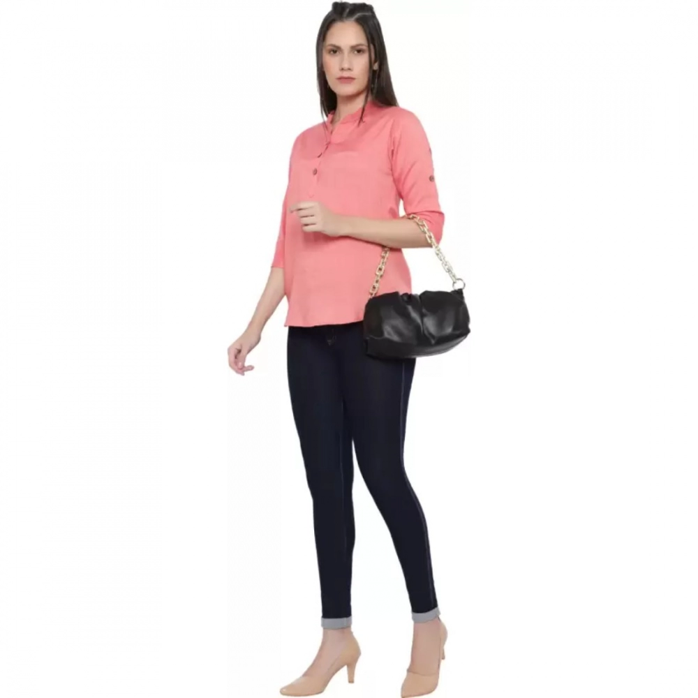 Women’s Casual Three Fourth Sleeve Solid Pink Top