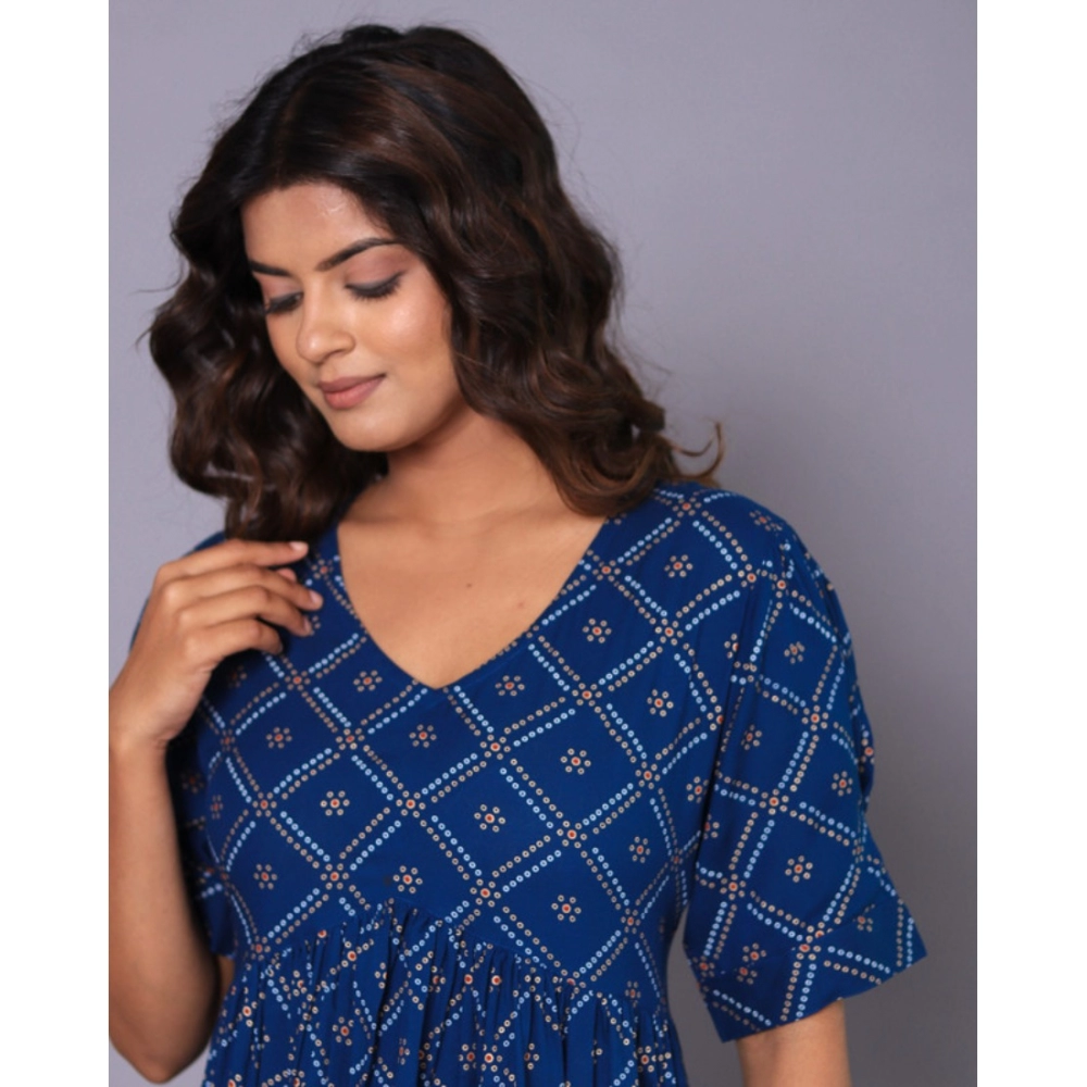 Be the first to review “Women’s Casual Viscose Rayon Half Sleeve Alia Cut Gown (Blue)”