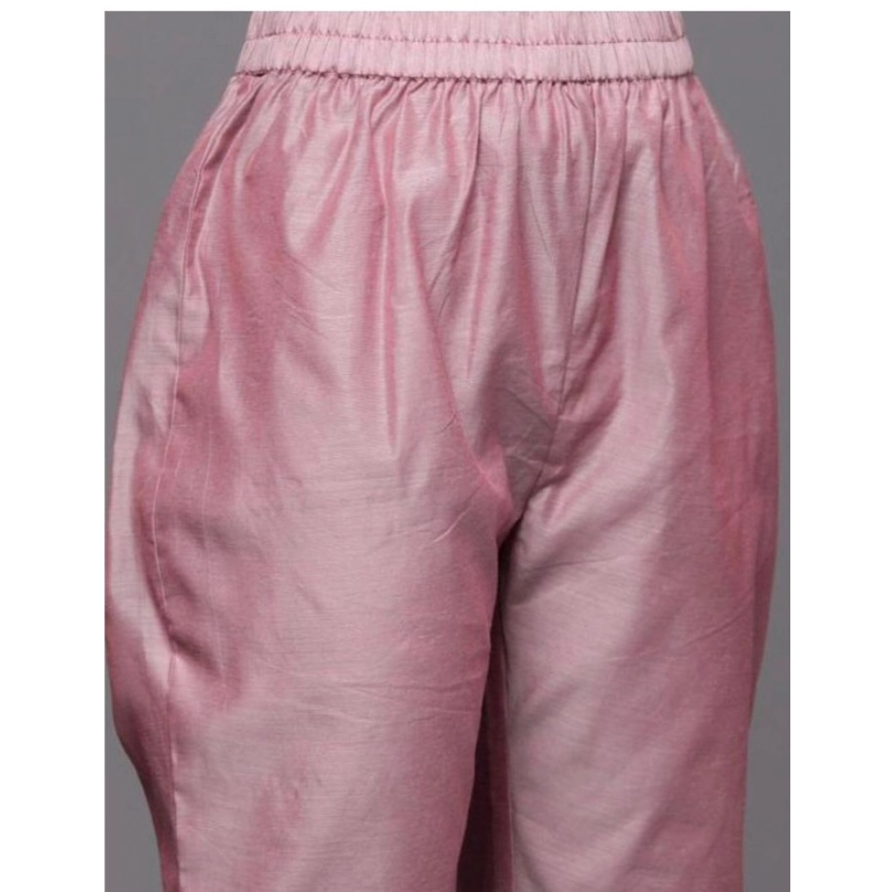 Women’s Chanderi Embroidered 3-4th Sleeve Kurti With Pant And Dupatta Set