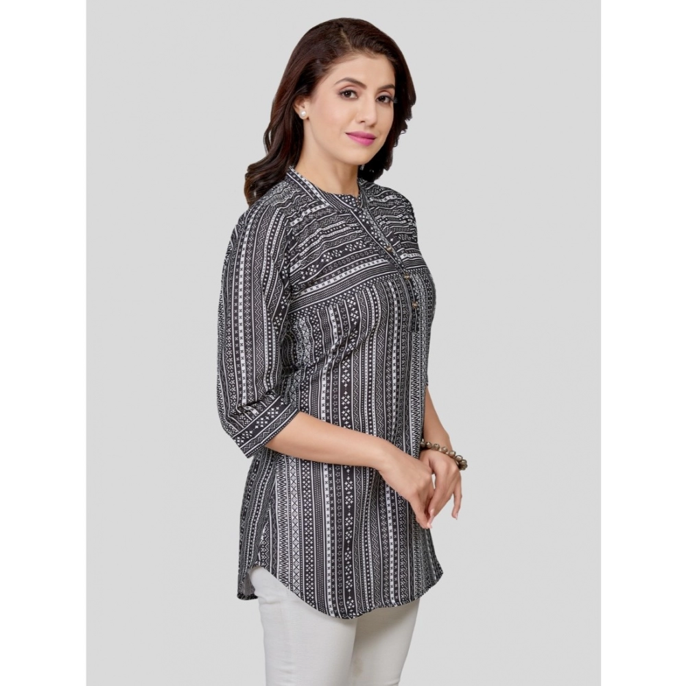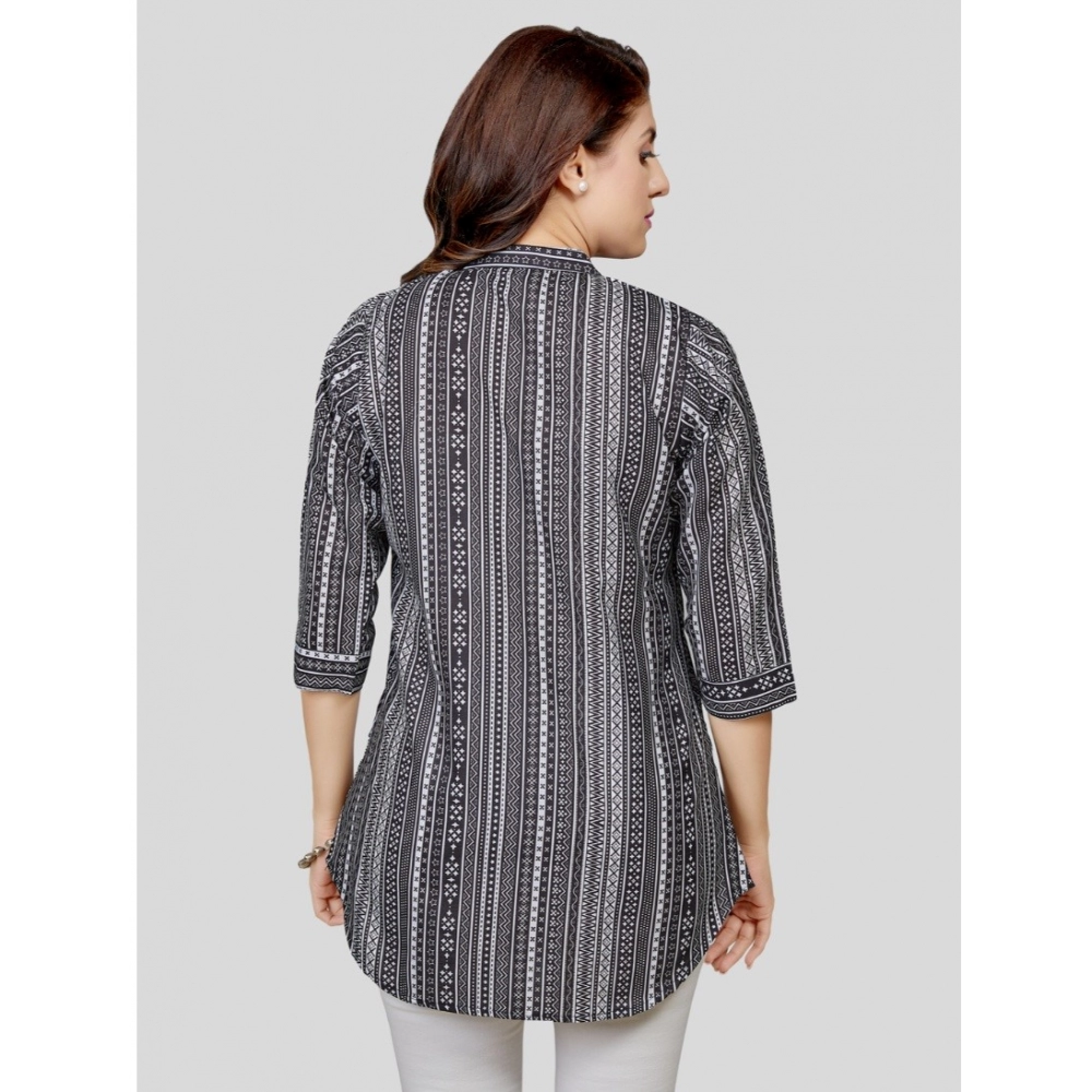 Women’s Cotton Blend Mandarin Collar 3/4 Sleeves Short Top