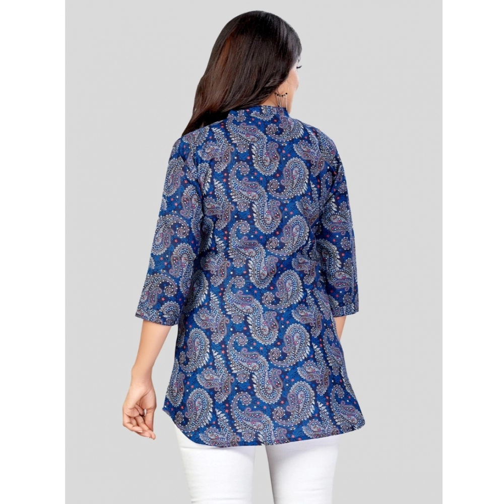 Be the first to review “Women’s Cotton Blend Mandarin Collar 3/4 Sleeves Short Top (Blue)”