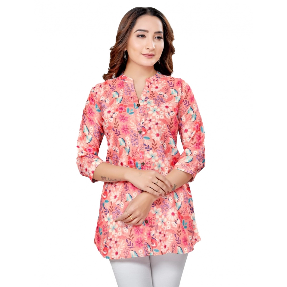 Women’s Cotton Blend Mandarin Collar 3/4 Sleeves Short Top