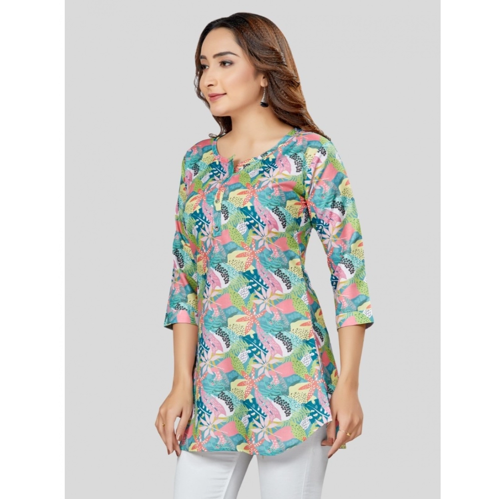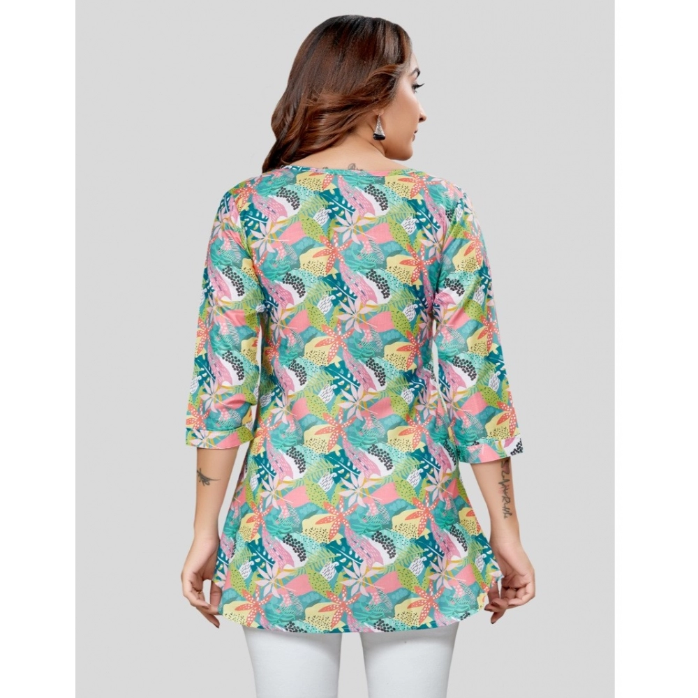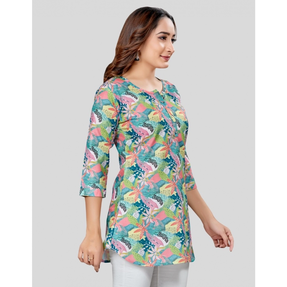 Women’s Cotton Blend Round Neck 3/4 Sleeves Short Top (Multicolor)