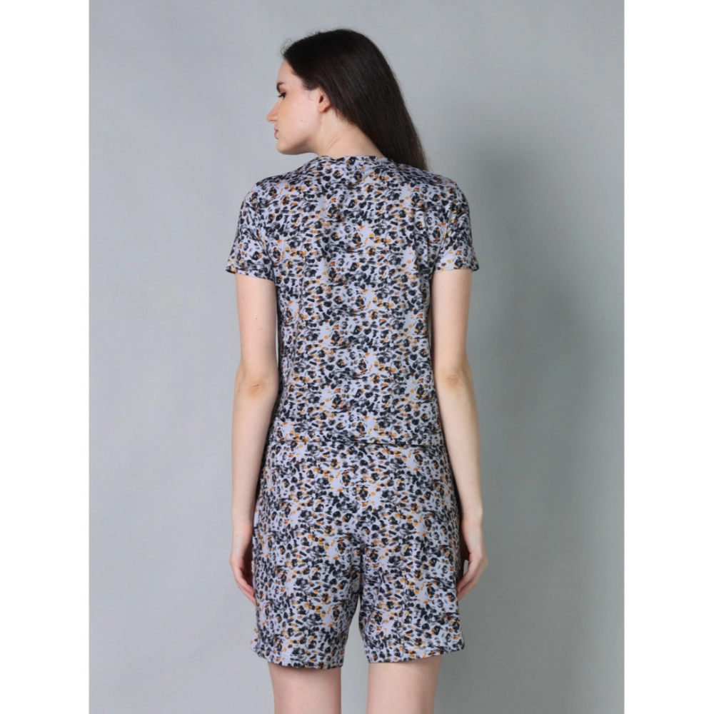 Women’s Cotton Blended Printed Round Neck Half Sleeve Top – Shorts Set (Multicolor)