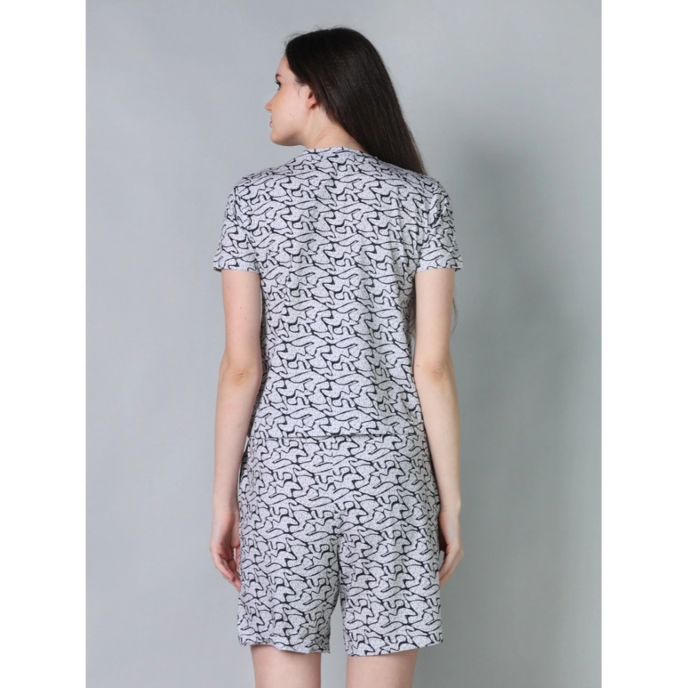 Women’s Cotton Blended Printed Round Neck Half Sleeve Top – Shorts Set (Off_White)