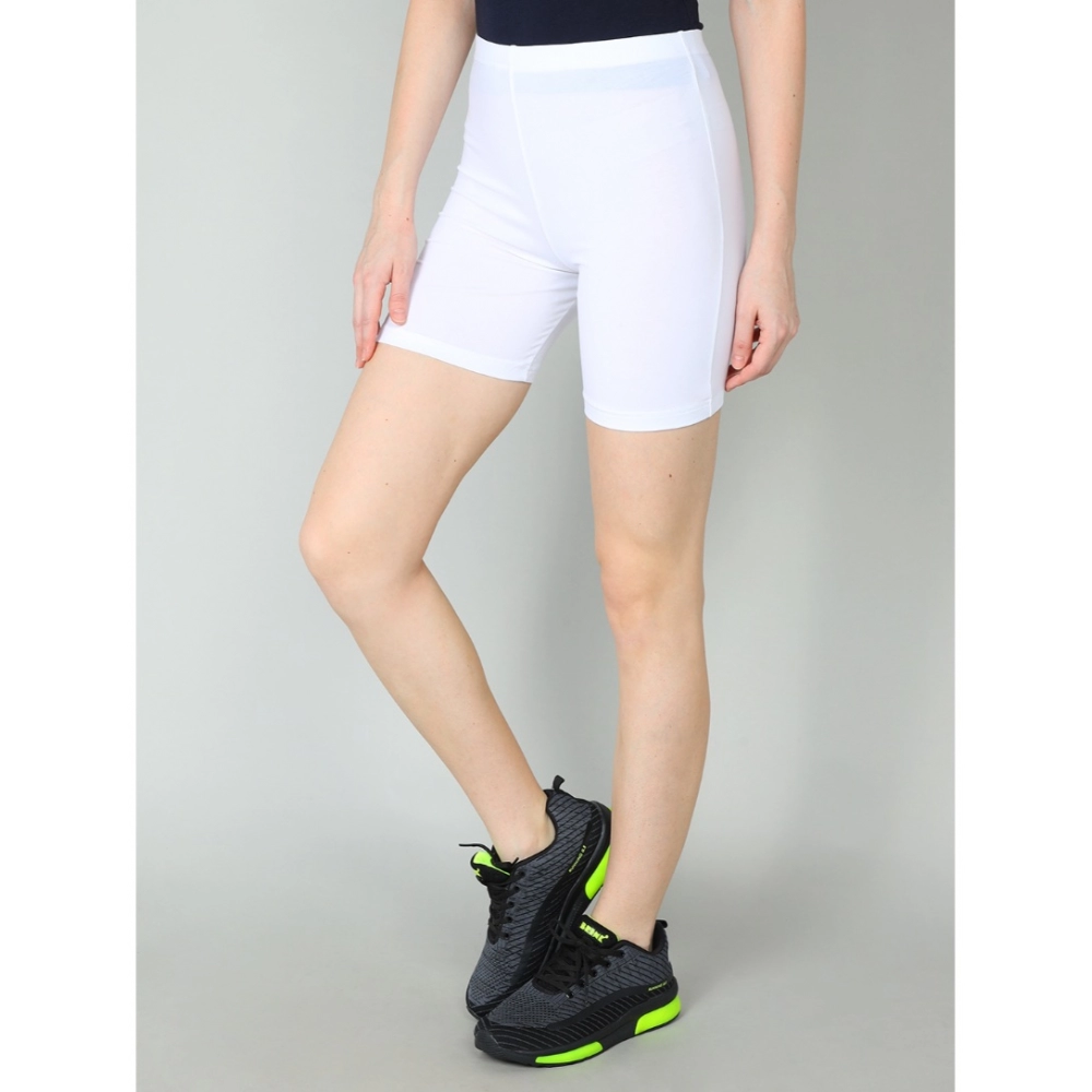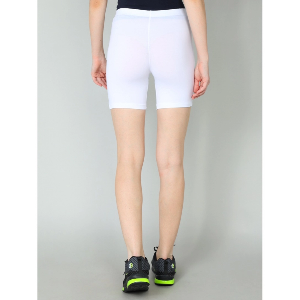 Women’s Cotton Blended Solid Above Knee Sports Shorts (White)