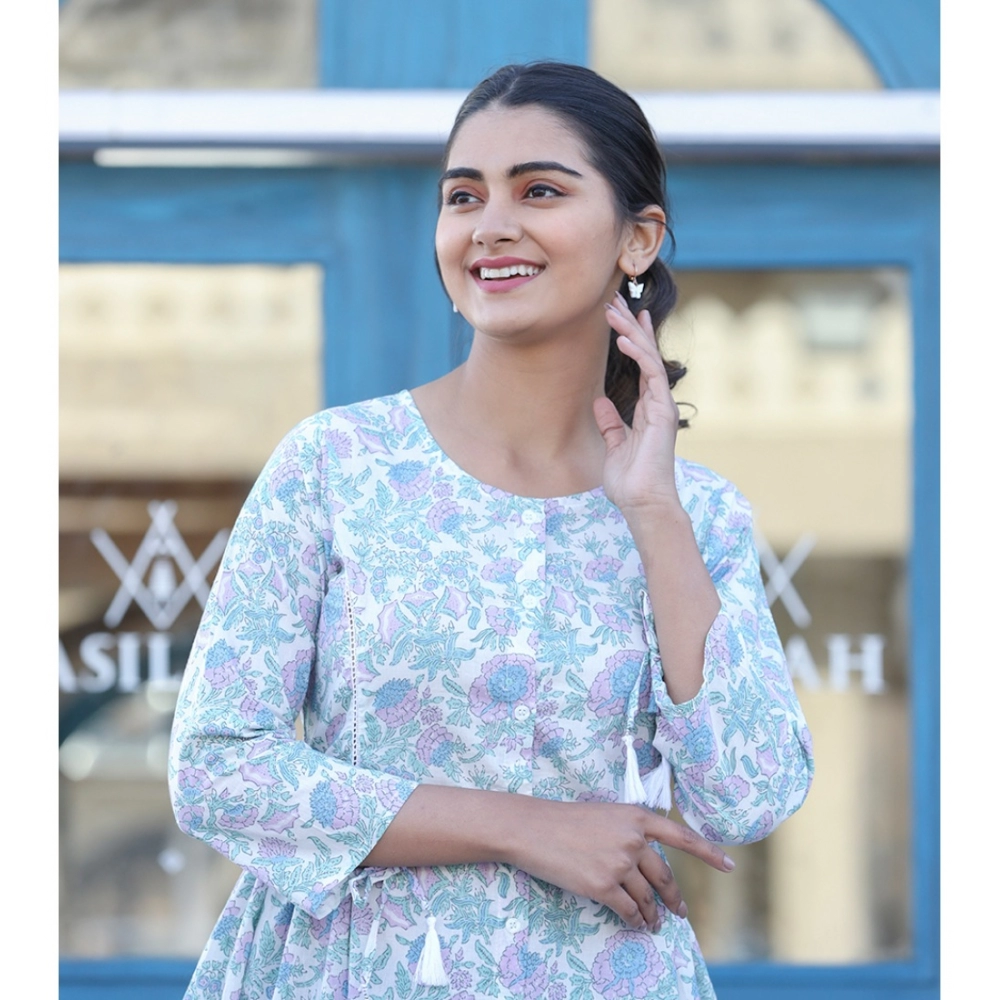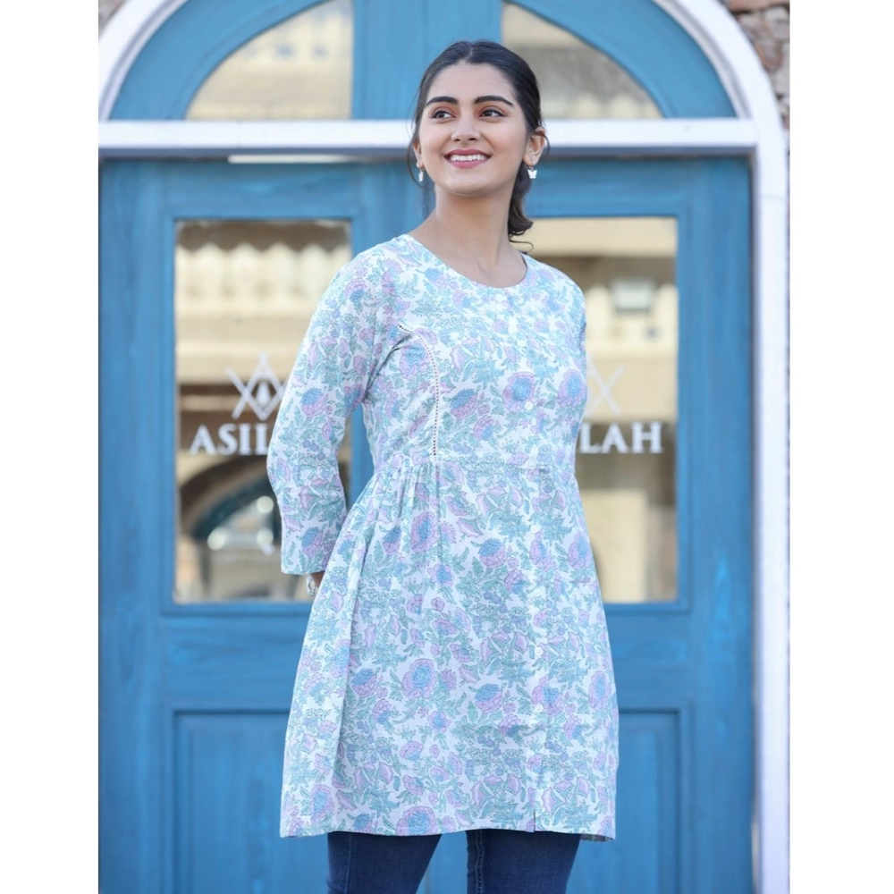 Women’s Cotton Printed 3/4 Sleeve Round Neck Tunics