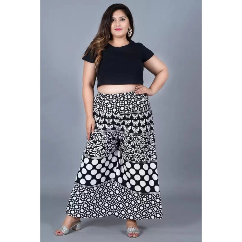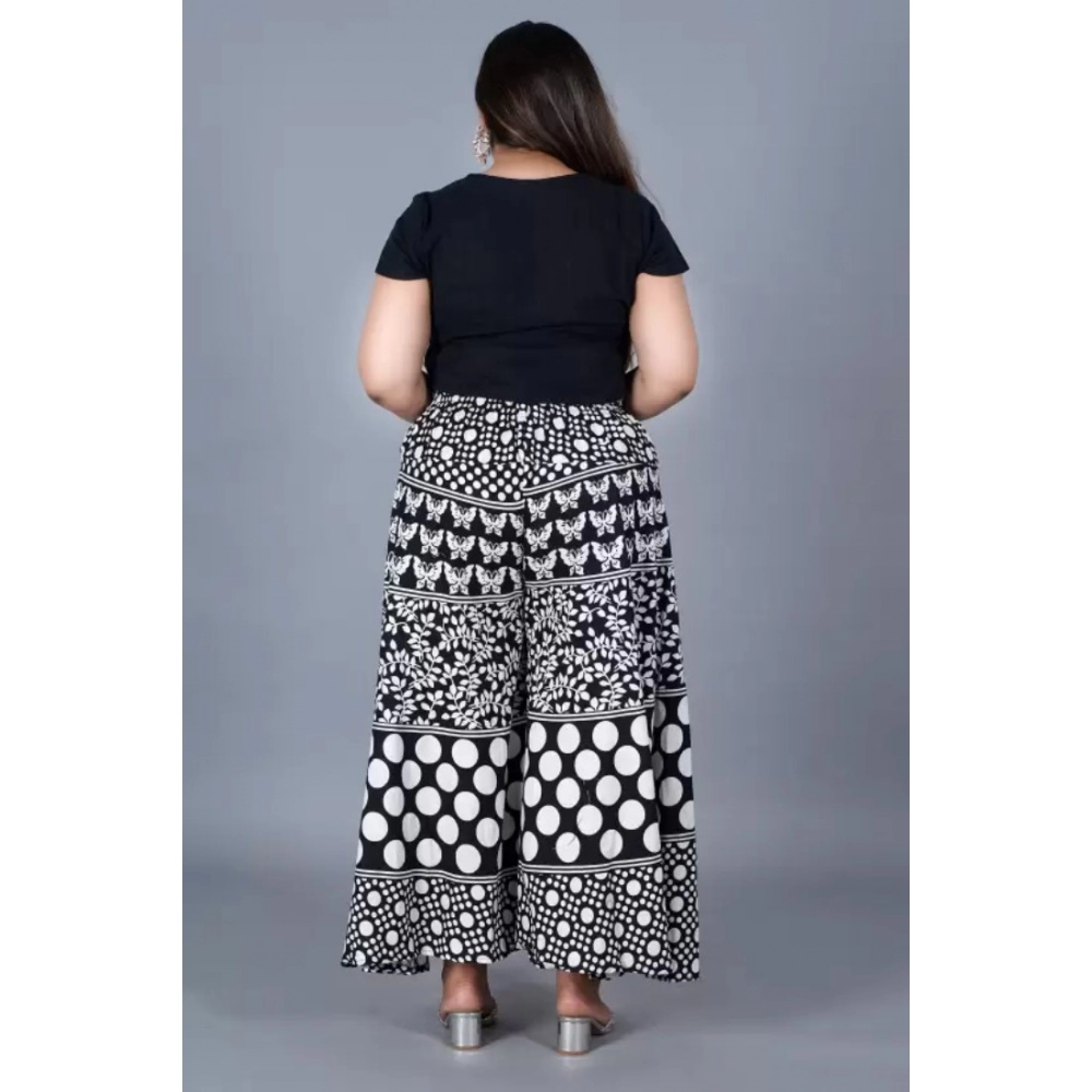 Women’s Cotton Printed Elastic Palazzo Pant (Black, Free Size)