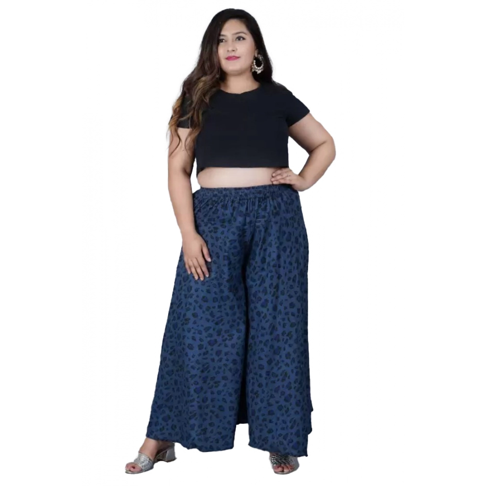 Women’s Cotton Printed Elastic Palazzo Pant (Blue, Free Size)