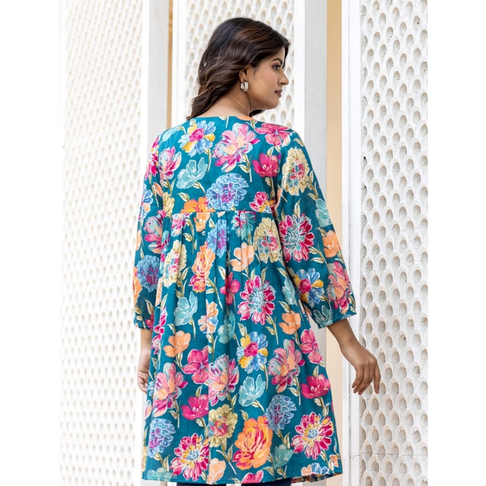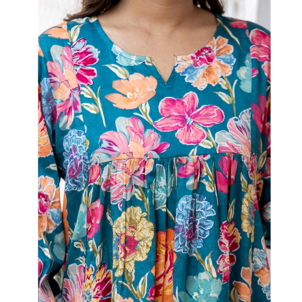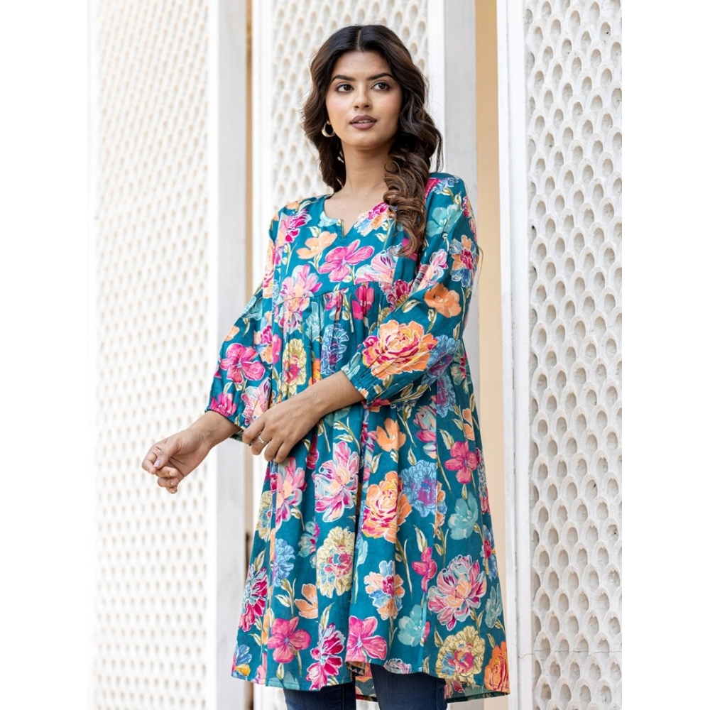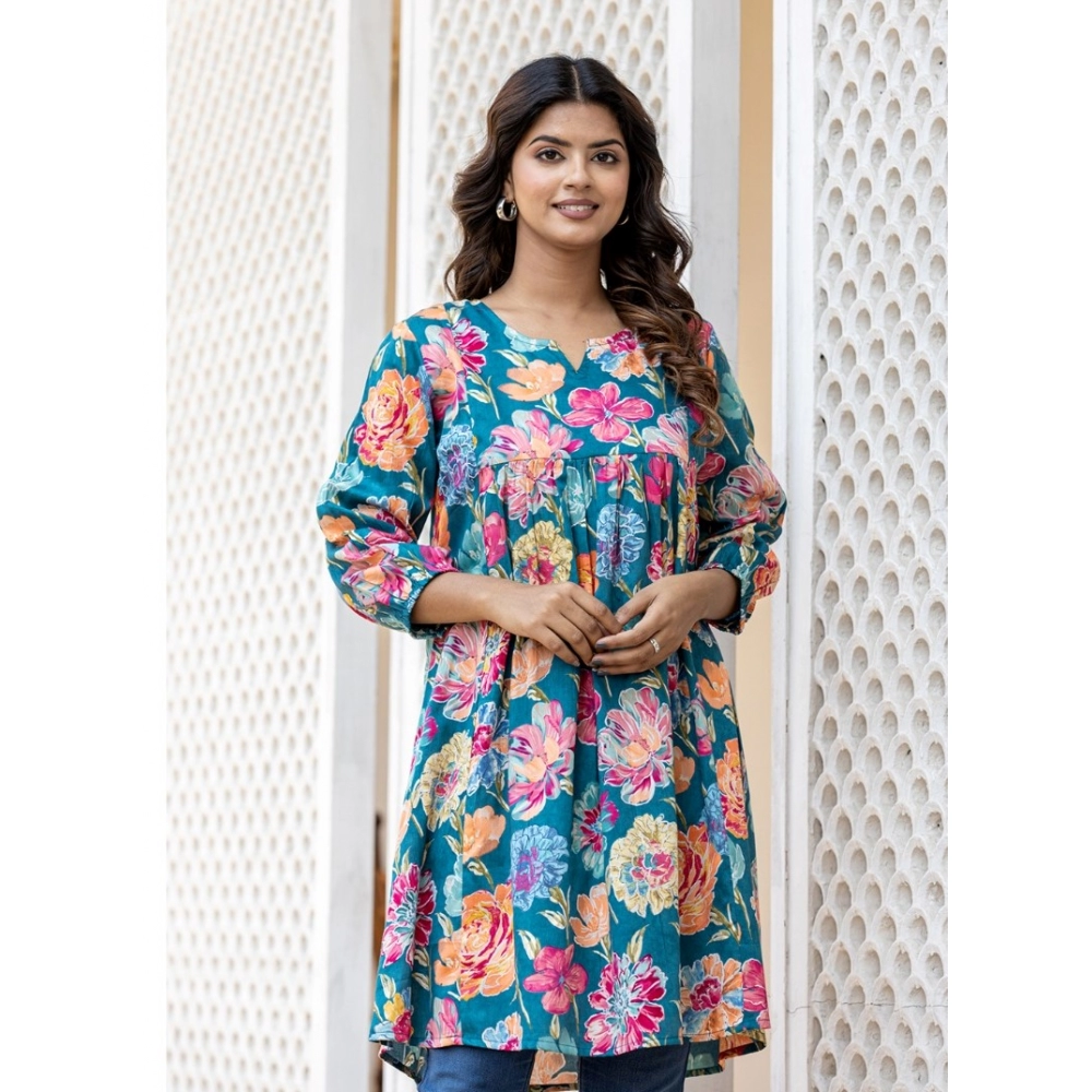 Women’s Cotton Printed Full Sleeve Mandarin collar Top