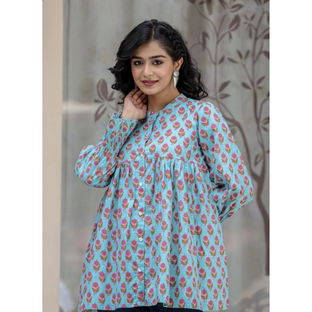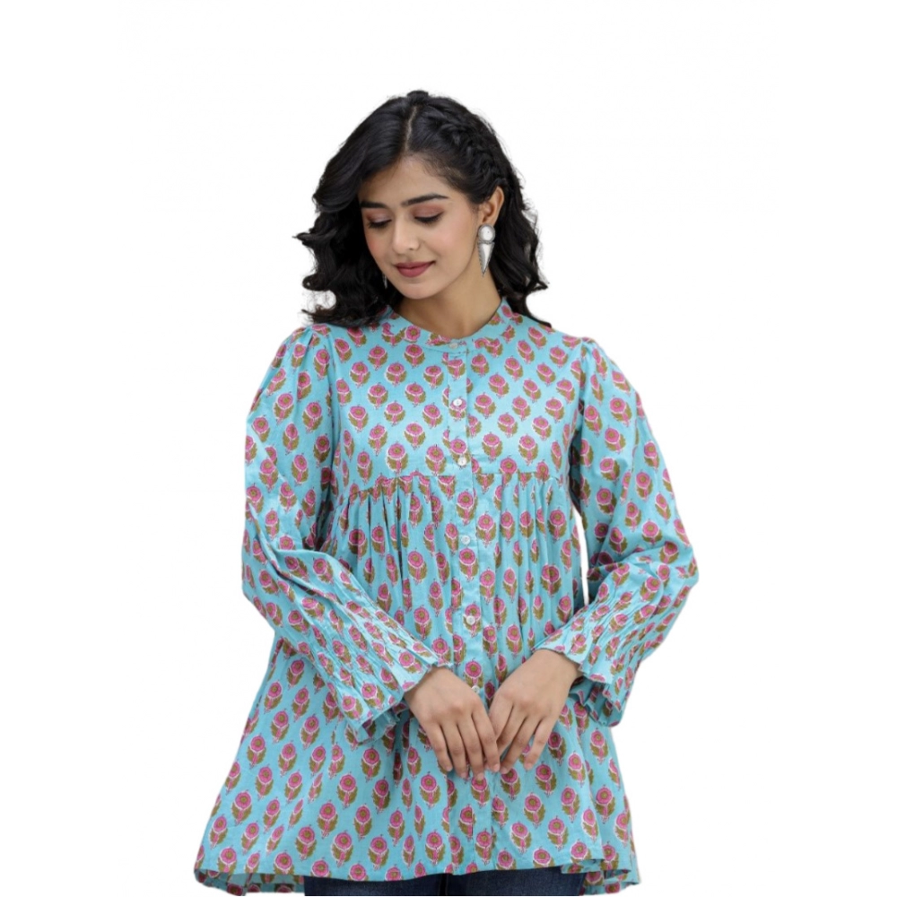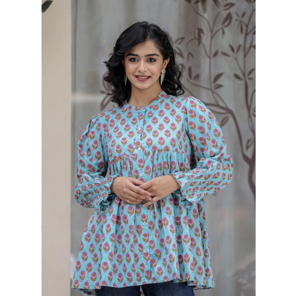 Women’s Cotton Printed Full Sleeve Mandarin collar Tunics