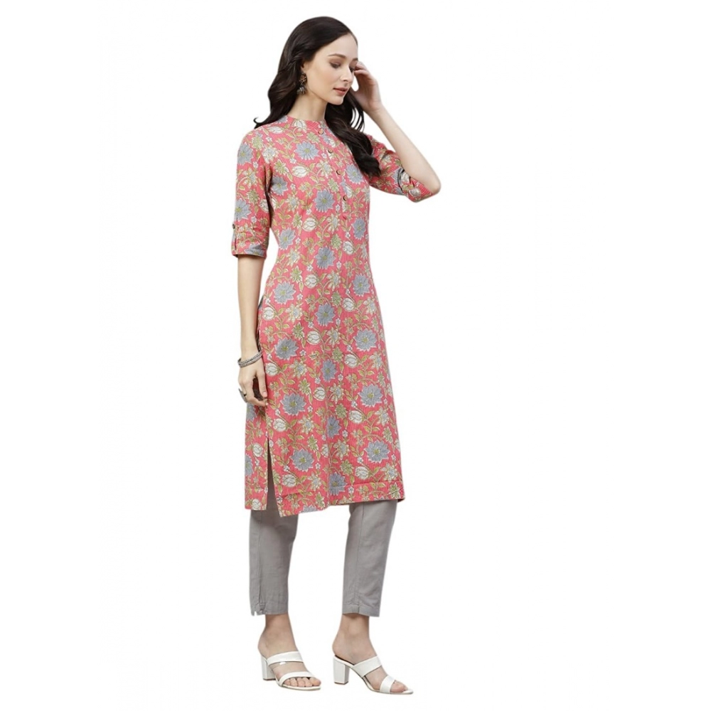 Women’s Cotton Printed Straight Kurti (Pink, Cotton)