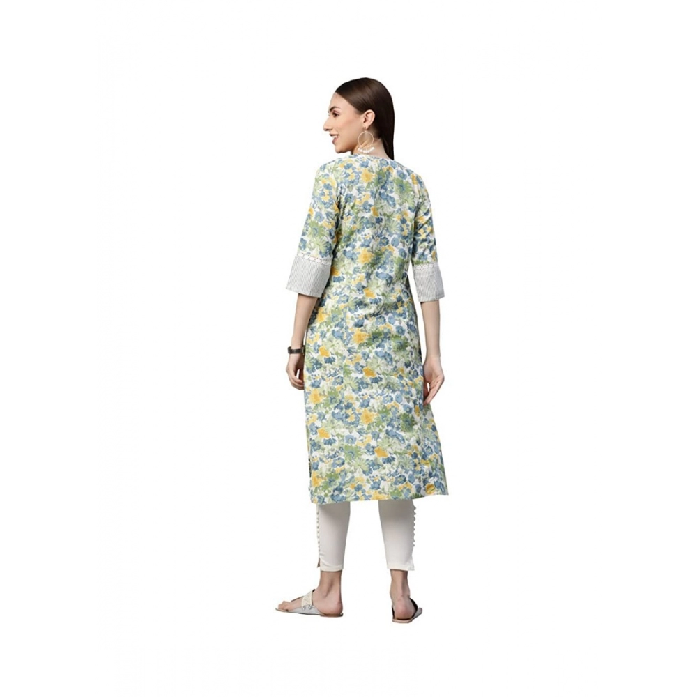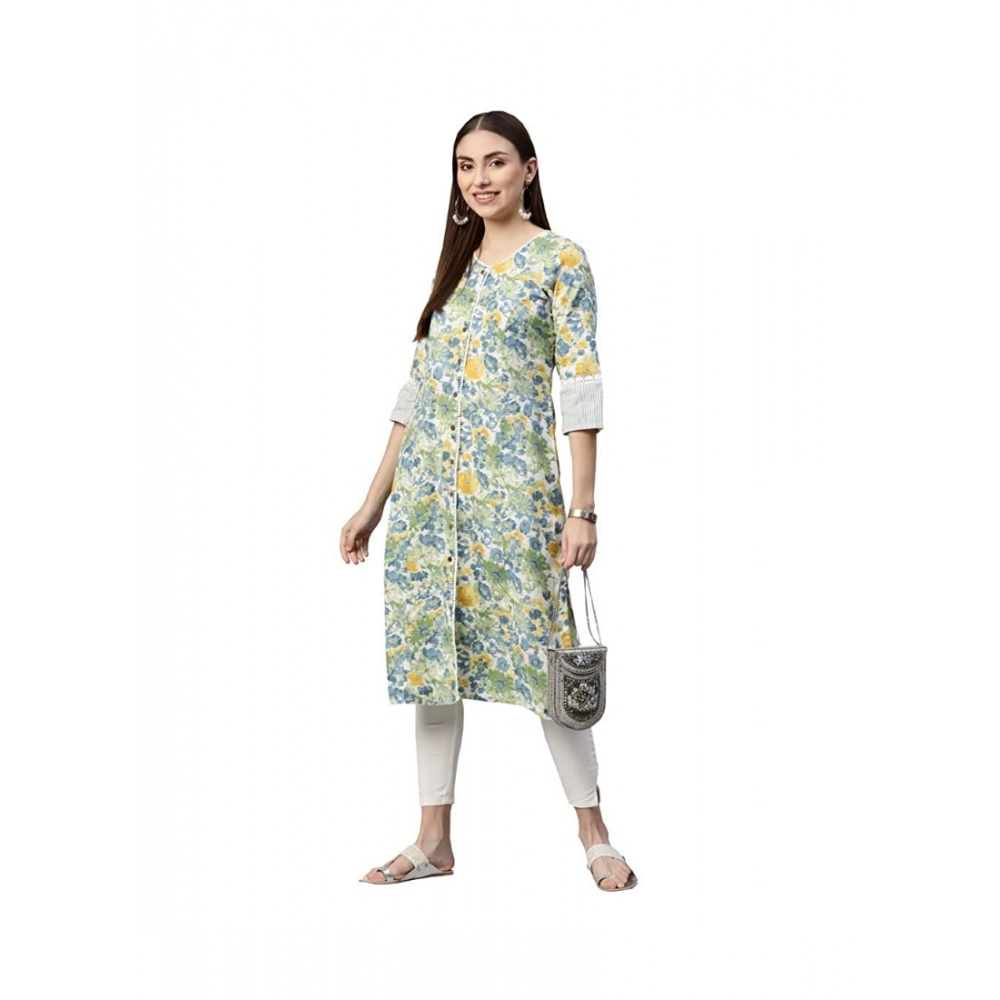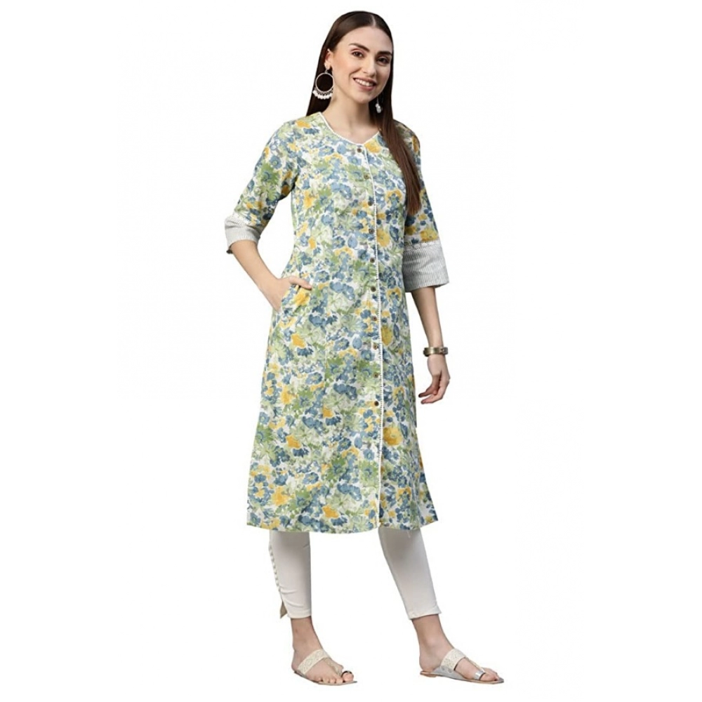 Women’s Cotton Printed ?Straight Kurti (White, Green, Cotton)
