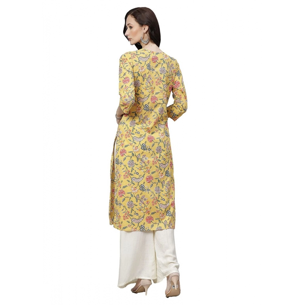 Women’s Cotton Printed Straight Kurti (Yellow, Cotton)