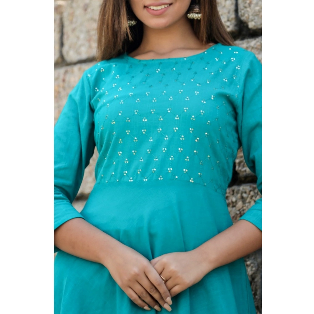 Women’s Cotton Solid 3/4 Sleeve Round Neck Kurti