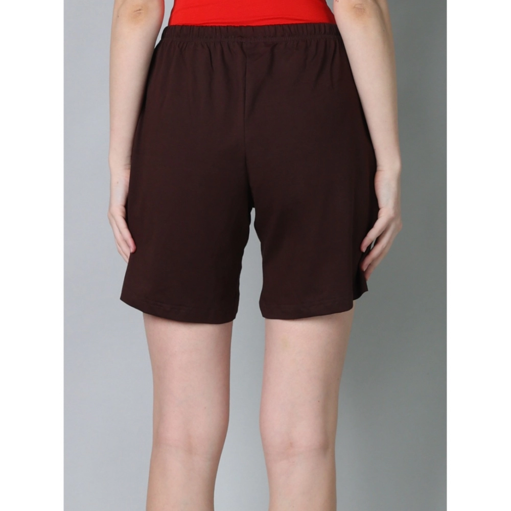 Women’s Cotton Solid Above Knee Shorts (Brown)