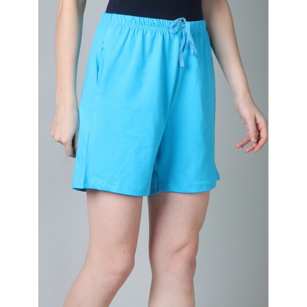 Women’s Cotton Solid Above Knee Shorts (SkyBlue)