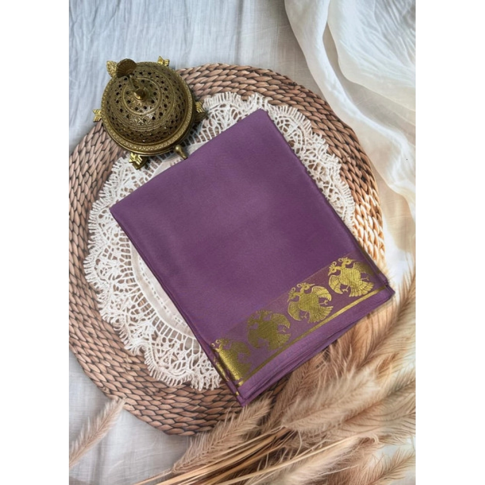 Be the first to review “Women’s Crepe Chit Pallu Solid Saree With Unstitched Blouse 5.5Mtr (Lavender)”