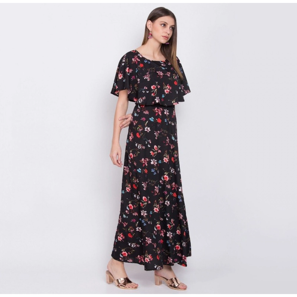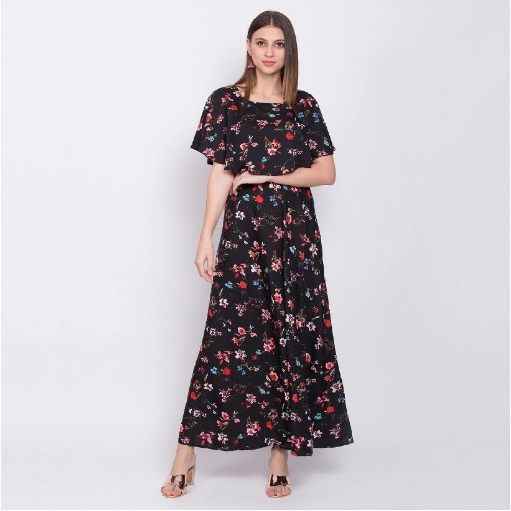 Women’s Crepe Floral Half Sleeves Full Length Gown