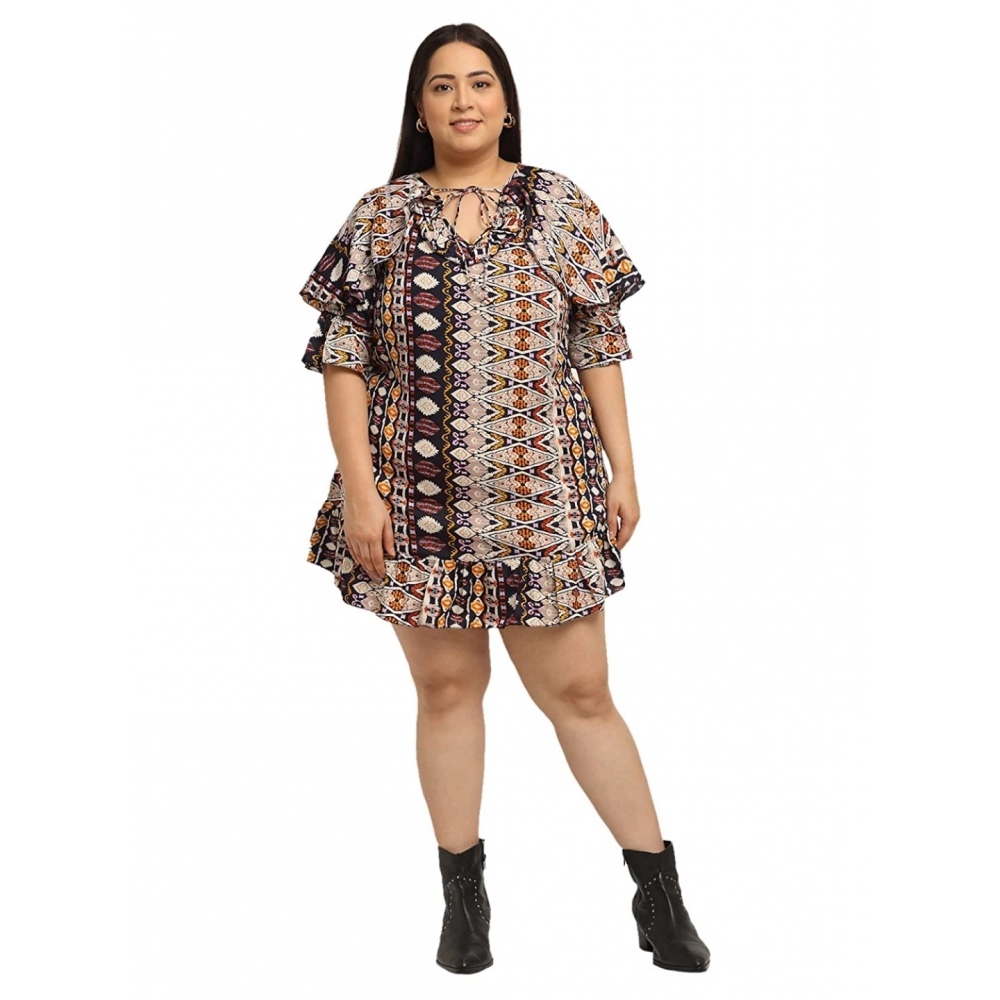 Women’s Crepe Printed Knee Length Fit and Flare Dress (Multi)