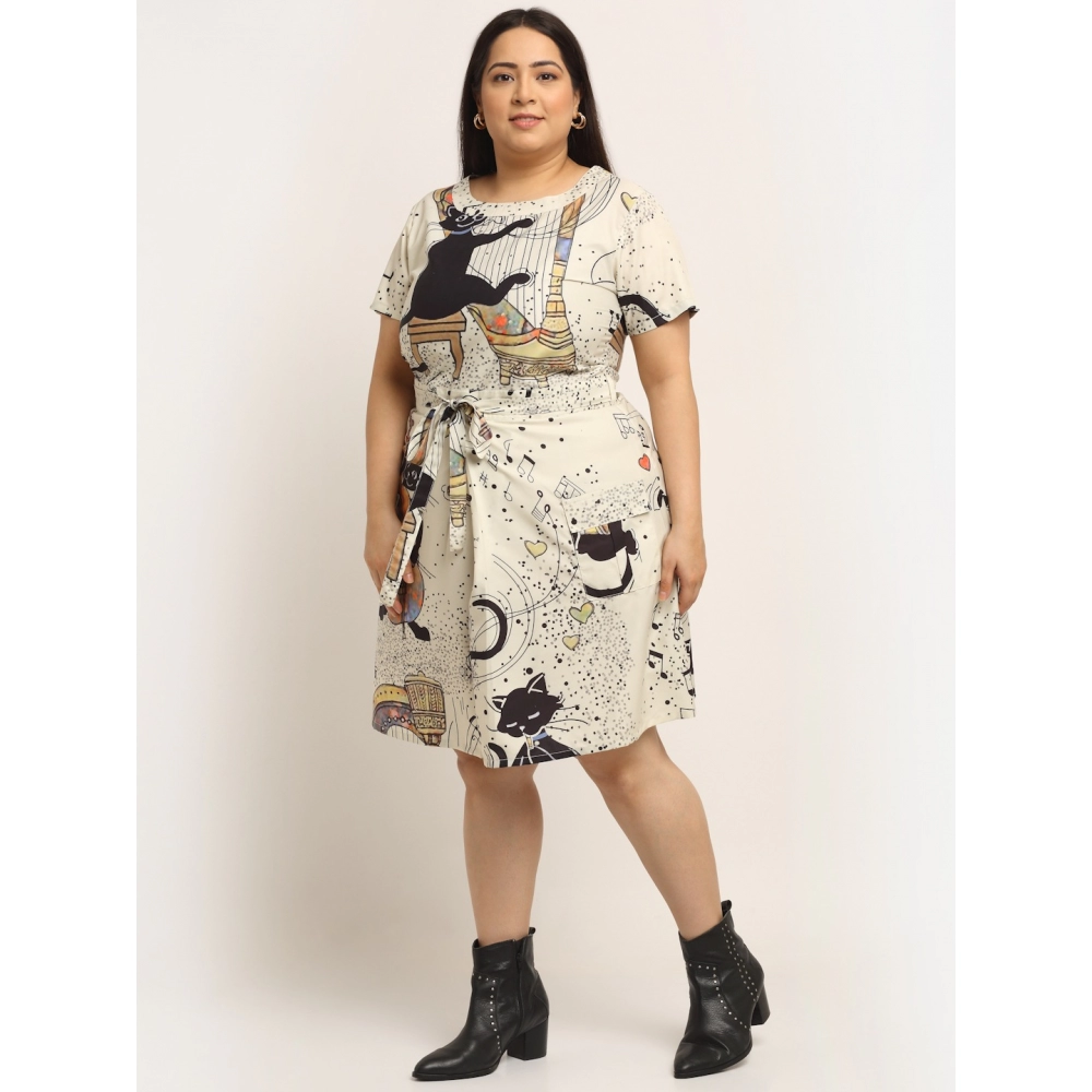 Women’s Crepe Printed Knee Length Fit and Flare Dress (Multi)