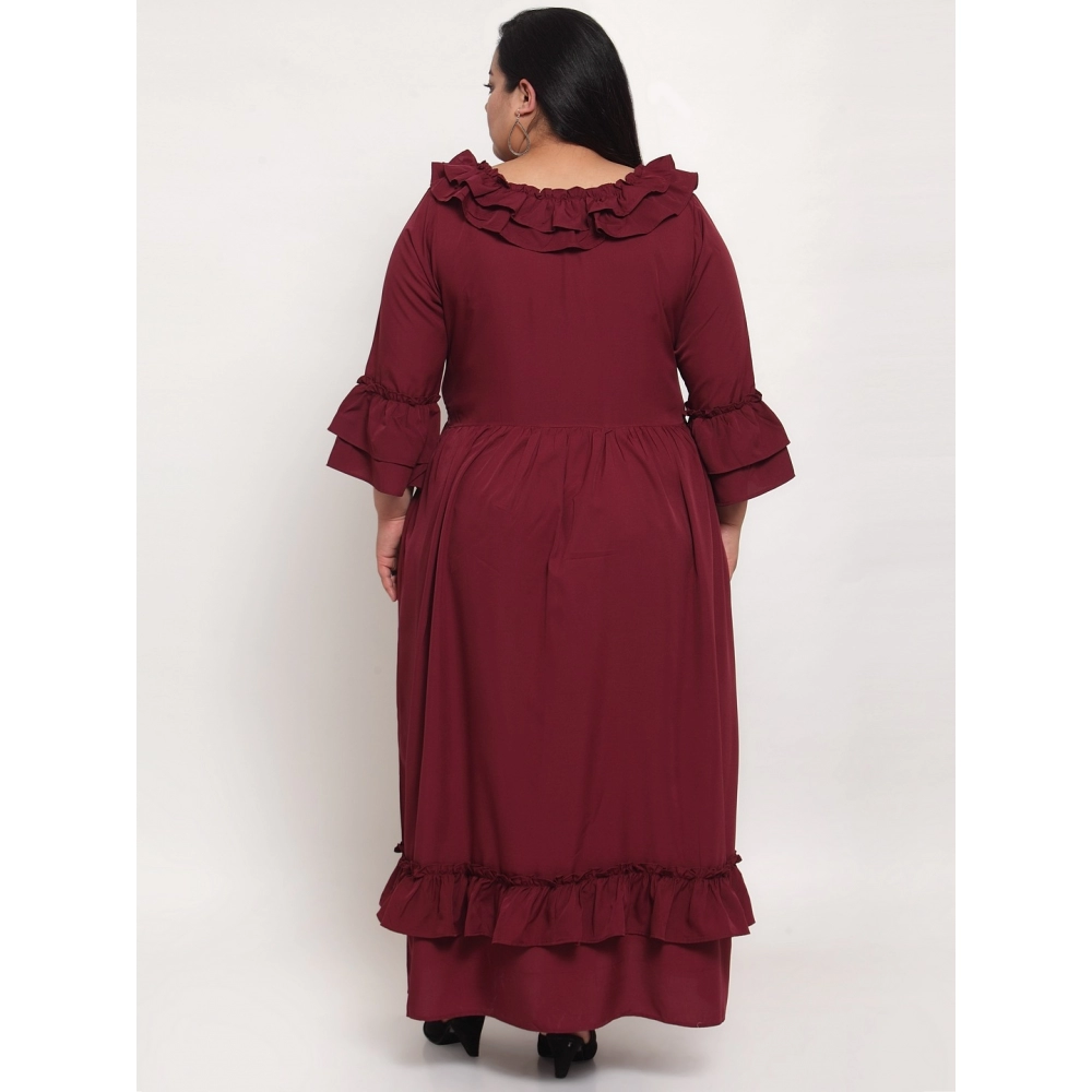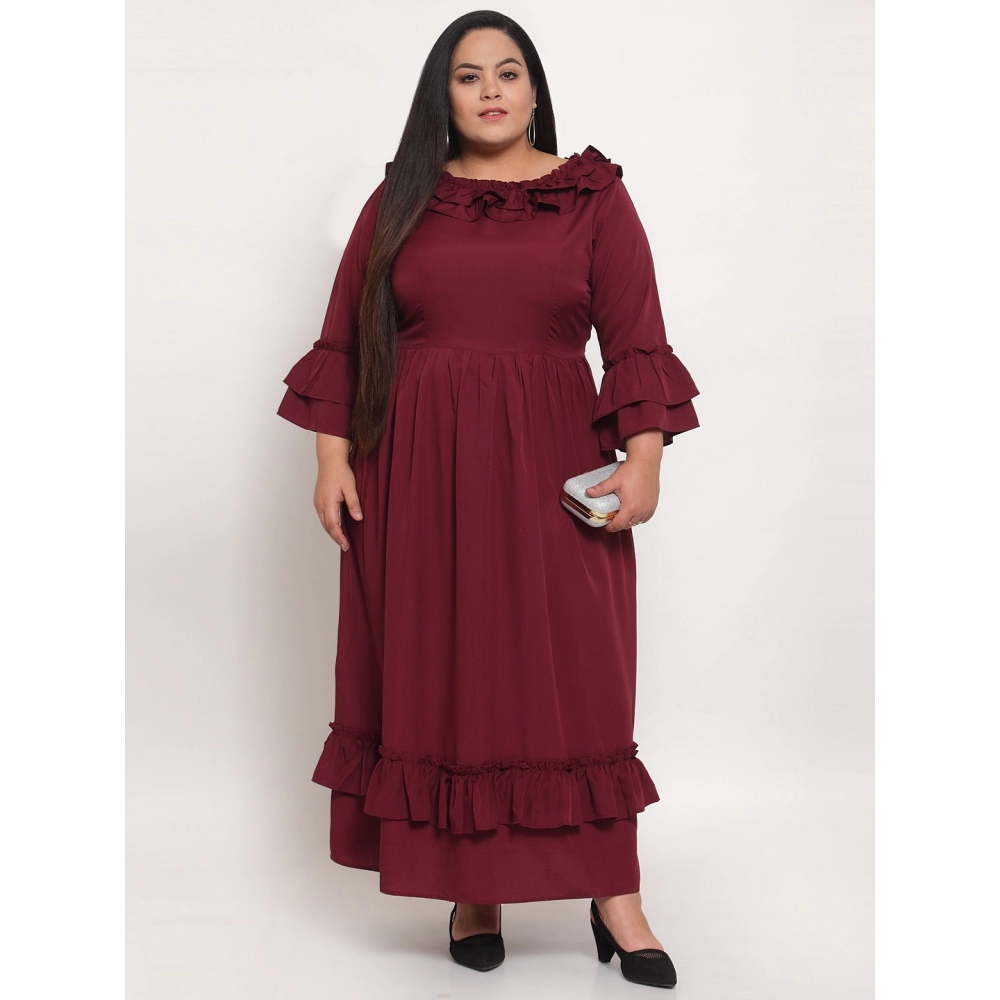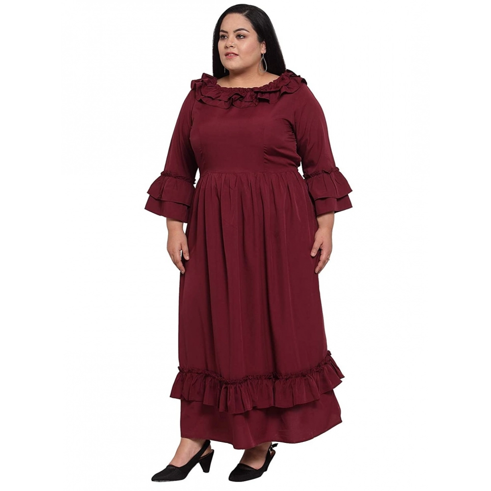 Women’s Crepe Solid Full Length Fit and Flare Dress (Maroon)
